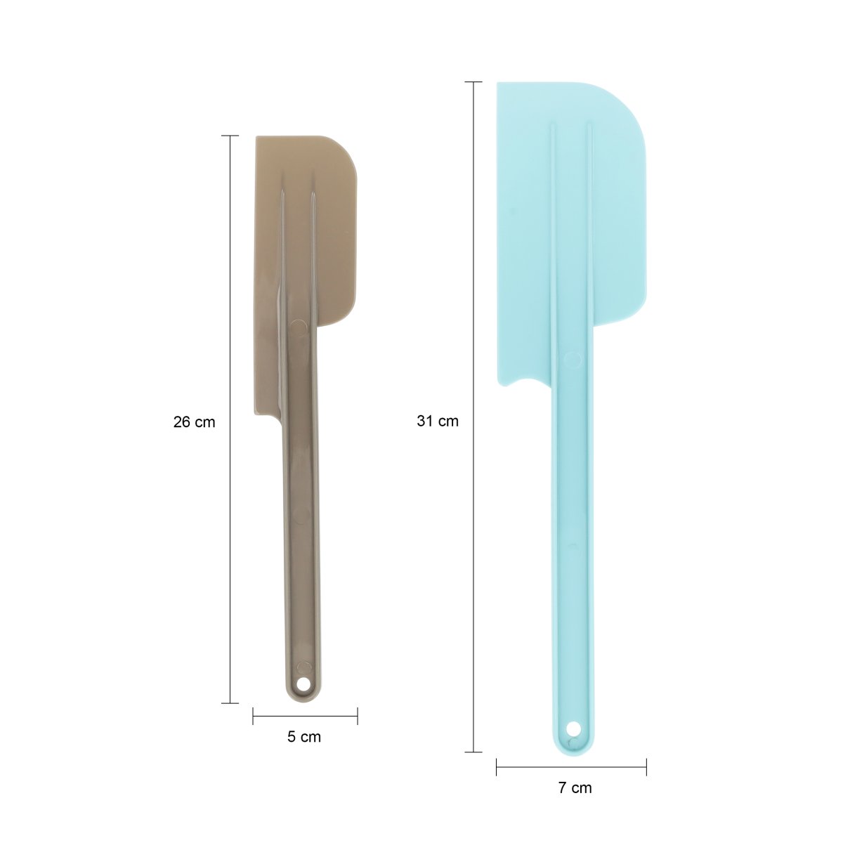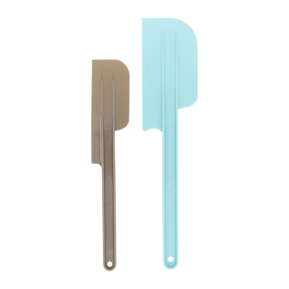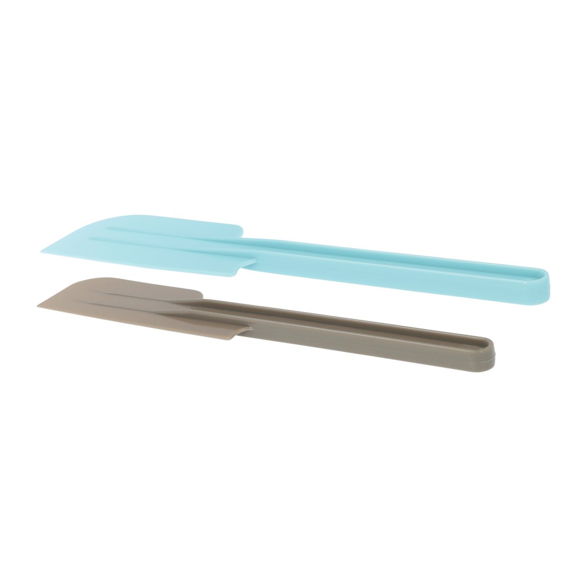 De spatels worden geleverd als set van twee. De kleinere spatel is grijs en de grotere spatel is lichtblauw. Afhankelijk van wat je bereidt, gebruik je een grotere of kleinere spatel. Zo heb je altijd het juiste formaat bij de hand.