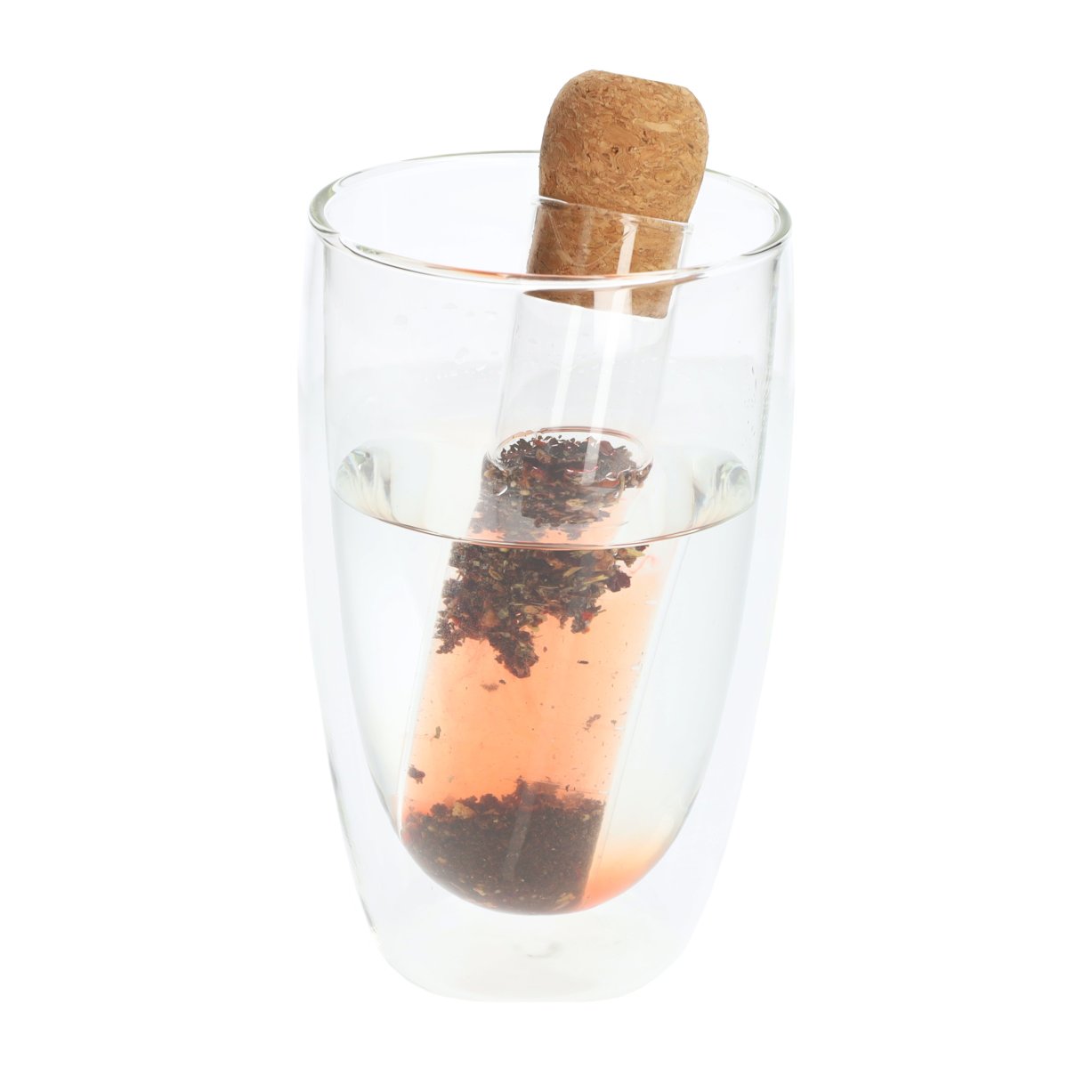 Glazen theezeef met dopje van kurk