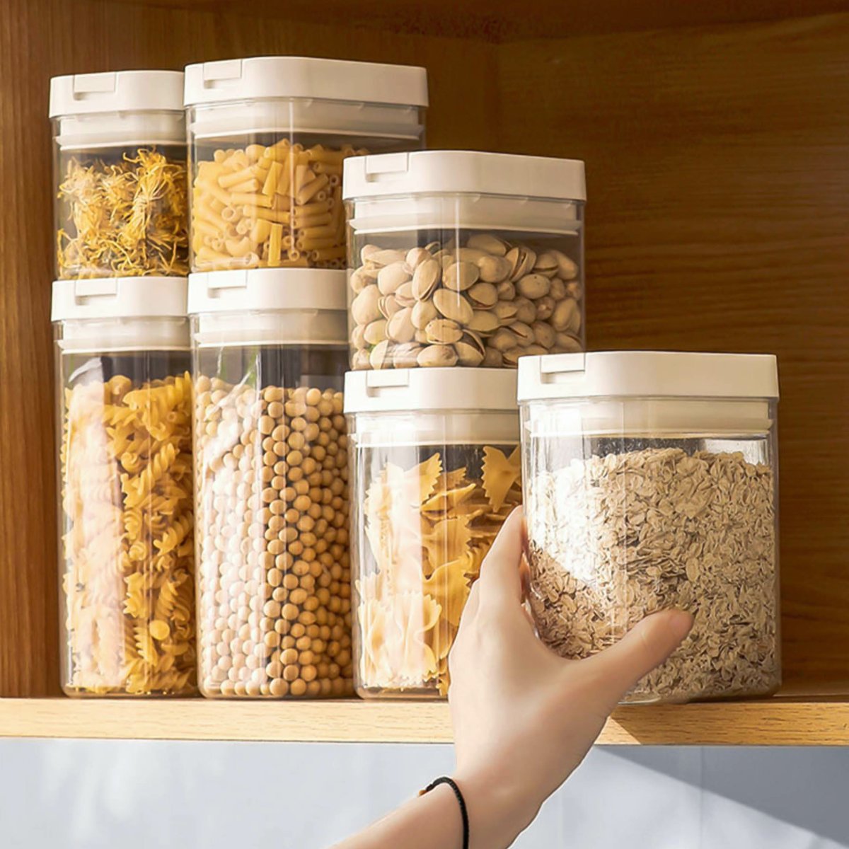 Voorraadpotten komen in elke keuken van pas. Of je nou pasta, ontbijtgranen of suiker wilt bewaren, een passende set van 4 voorraadpotten van plastic van 800 ml houdt het eten lekker vers. Bovendien staan voorraadpotten in jouw keukenkast overzichtelijk. Zo zie je precies wat je nog in huis hebt en wat er op je volgende boodschappenlijstje moet. Heb jij nog nieuwe voorraadpotten nodig? Dan is deze set van 4 voorraadpotten een goed idee. De potten hebben elk een inhoud van 800 milliliter en zijn af te sluiten met een deksel. Dat maakt deze voorraadpotten set van 4 erg geschikt voor diverse toepassingen.