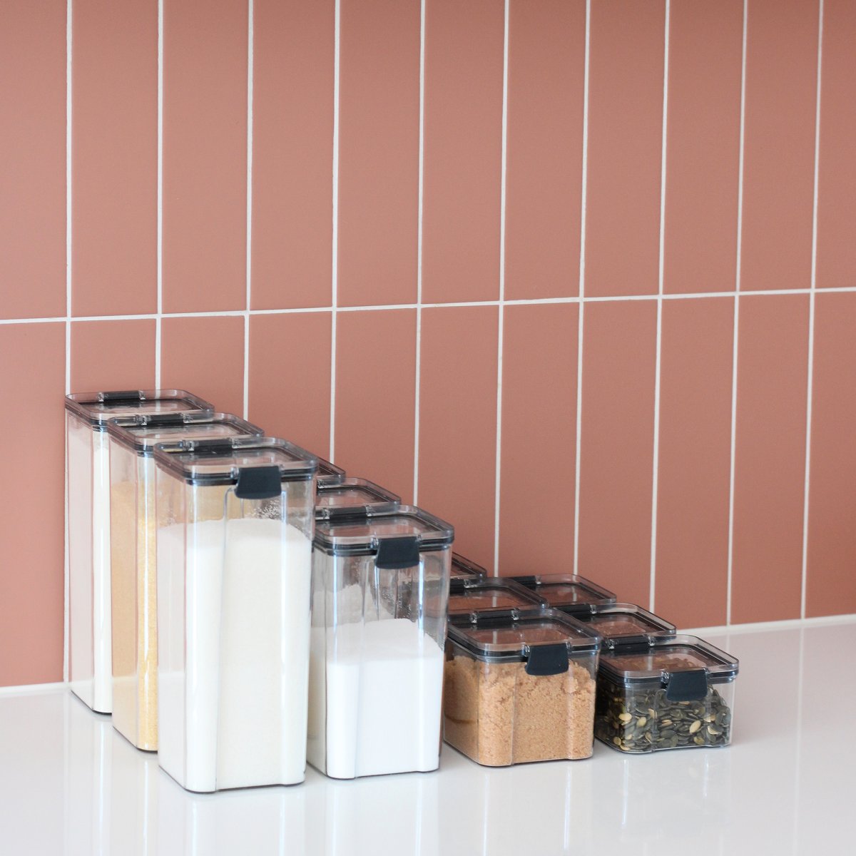 Heb je veel pasta in huis, maar liggen de pakken met spaghetti, tortelonni of fussili verdeeld over de hele lade? Kan je havermout een mooi plekje op een plank gebruiken omdat je hier iedere dag een lekkere shake van maak? Of ben je weg van bakken en berg je graag bloem netjes op, aangezien dit nu over de hele lade verstrooid ligt? Om wat voor vast ingrediënt het ook gaat, met deze opbergers geef je ze een handige plek in de keuken.