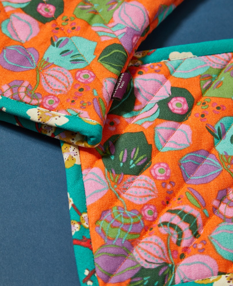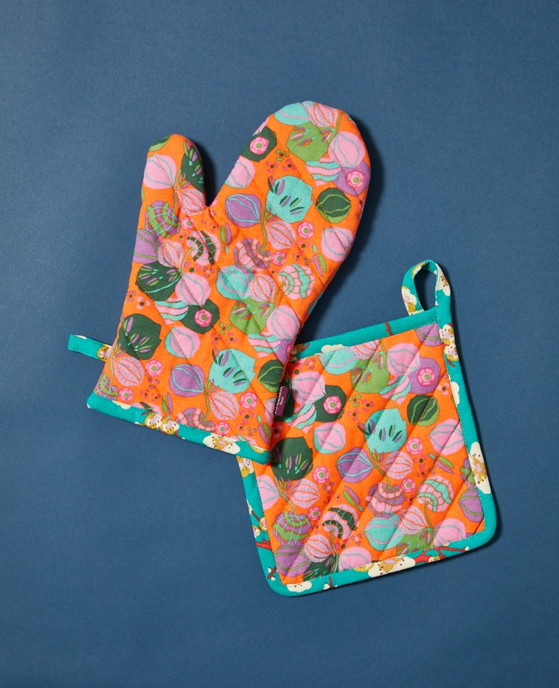 Les Touristes: Ovenwand en pannenlap | Bloom Orange (Trim Blossom Blue) GLO 015