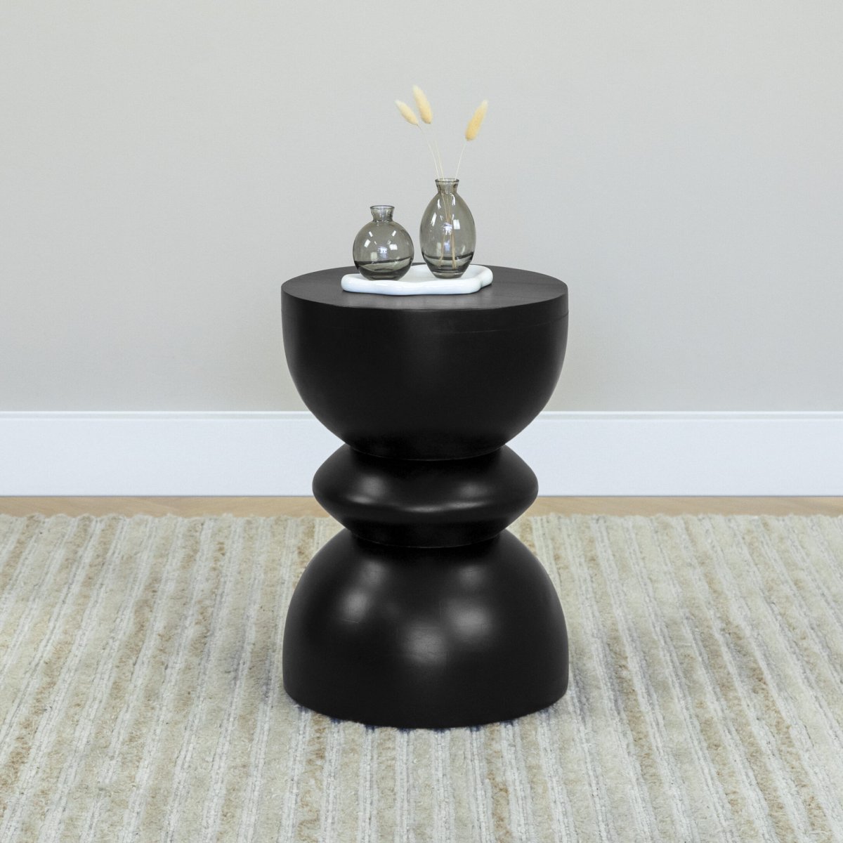 Zwarte ronde bijzettafel van mangohout met modern gestapeld ontwerp