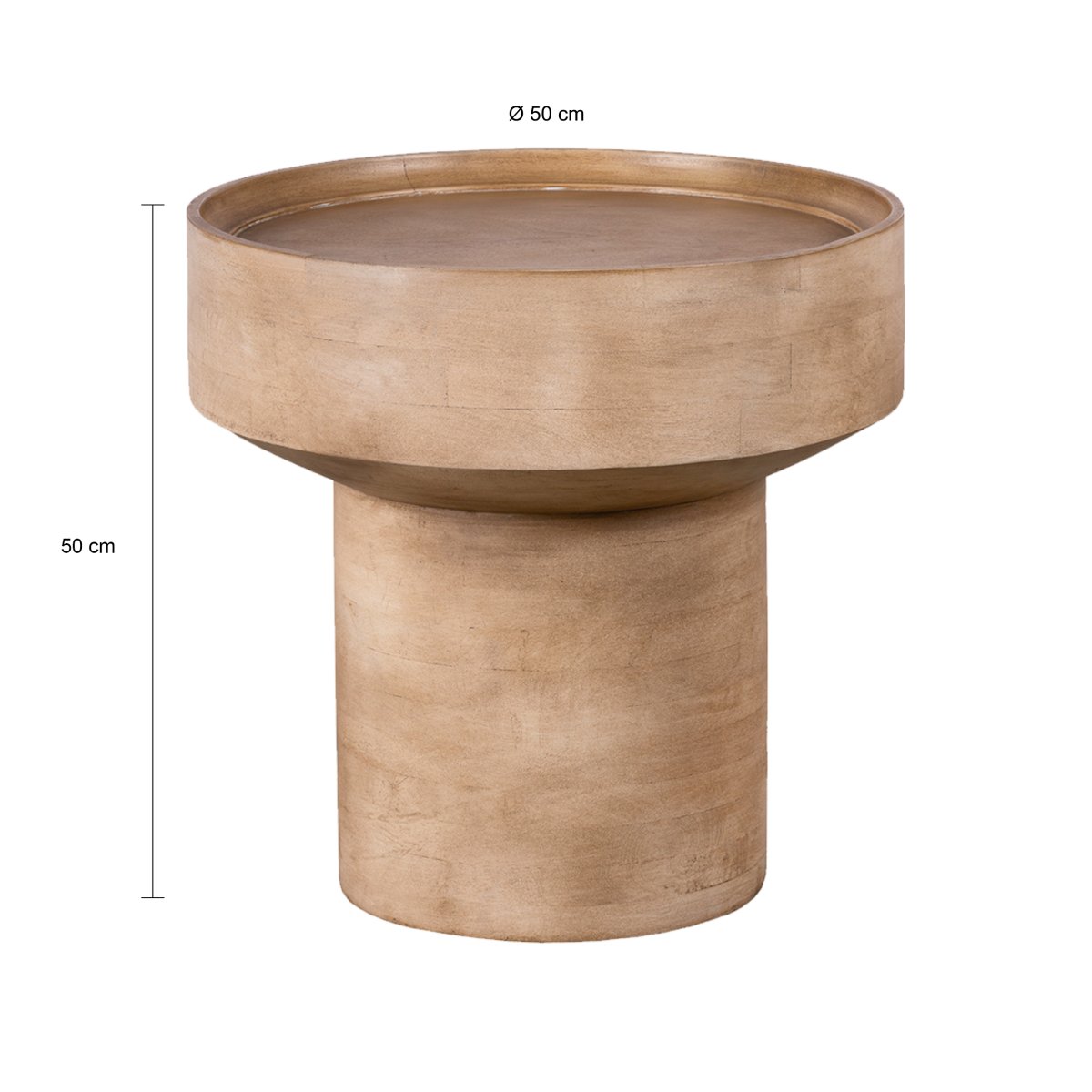 Met een diameter van 50 cm biedt deze bijzettafel voldoende ruimte om je essentiële items bij de hand te houden, zonder te veel plaats in te nemen. De hoogte van 50 cm maakt het een veelzijdige keuze die goed past bij verschillende soorten zitmeubels. Het slanke, maar stevige ontwerp zorgt voor een stabiele basis, terwijl de ronde vorm zachte lijnen aan je interieur toevoegt.