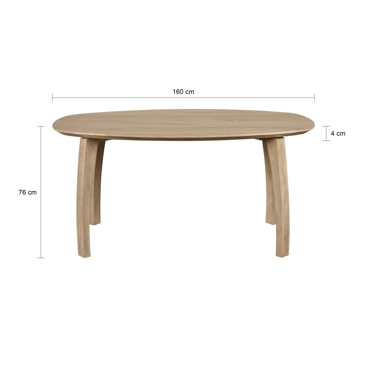 Met zijn natuurlijke houtkleur voegt de Lewis & Loft Luna direct sfeer toe aan elke ruimte. De afmetingen van 160 x 100 cm maken deze deens ovale eettafel geschikt voor vier tot zes personen, ideaal voor familiediners of een gezellige avond met vrienden. Met een hoogte van 76 cm biedt deze eettafel optimaal comfort.