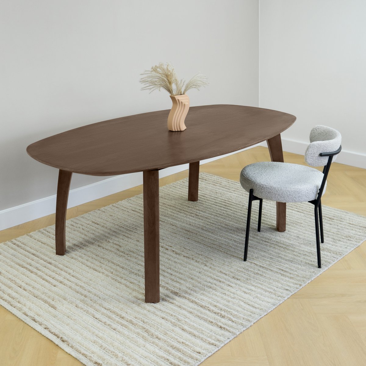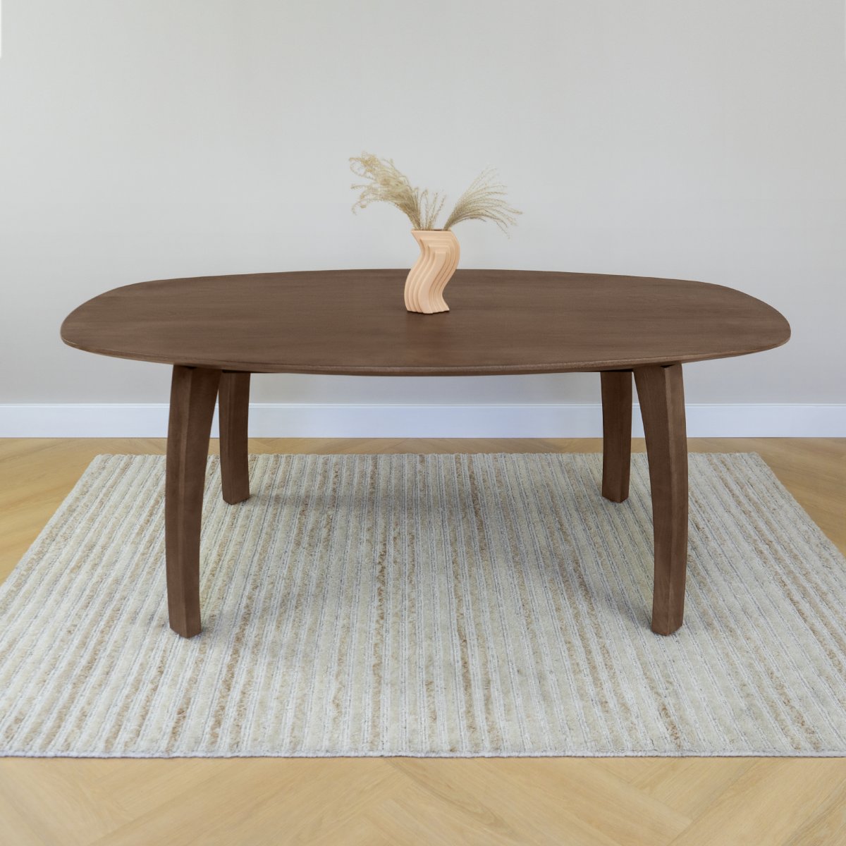 De Lewis & Loft Luna eettafel, met zijn unieke Deens ovale vorm, brengt een moderne twist in je eetkamer. Deze eettafel deens ovaal onderscheidt zich door het strakke, bruine tafelblad van mangohout, dat zorgt voor een natuurlijke en sfeervolle uitstraling. Het ontwerp van deze eettafel past perfect bij verschillende interieurstijlen, of je nu gaat voor Scandinavisch, industrieel, of modern.
