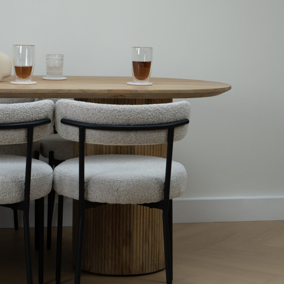 De natuurlijke, warme uitstraling van het mangohout, gecombineerd met de zachte ovale vorm en de stijlvolle ronde poten, zorgt ervoor dat deze tafel moeiteloos past binnen diverse interieurstijlen. Van modern tot rustiek, de ovale eettafel versterkt de sfeer van uw ruimte en vormt een centraal punt in elke eetkamer.