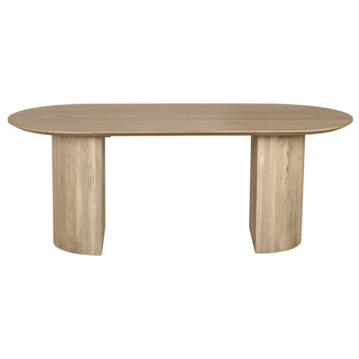 De Lewis & Loft eettafel Lynn is een stijlvolle en robuuste ovale eettafel van hout, uitgevoerd in naturel FSC®-gecertificeerd mangohout. Met een royale afmeting van 200×90 cm biedt deze tafel voldoende ruimte voor zes tot acht personen. De zachte ovale vorm gecombineerd met de unieke halve cilindervormige poten maakt deze mangohout eettafel tot een opvallend én tijdloos meubelstuk.