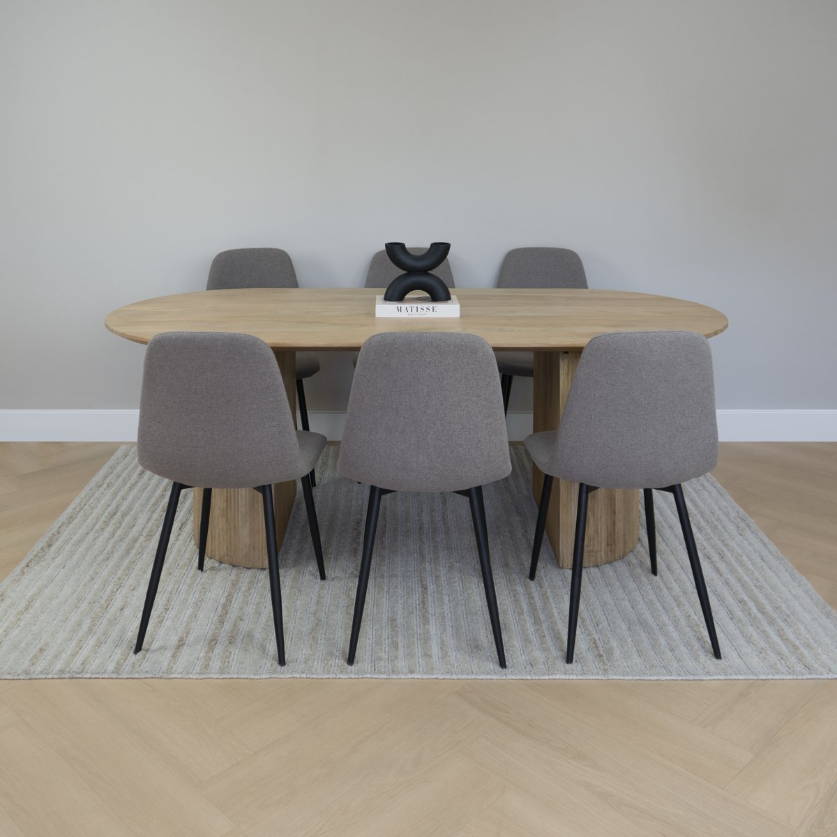 Met een afmeting van 200×90 cm biedt deze ovale eettafel comfortabel plaats aan zes tot acht personen. De afgeronde vormen zorgen voor een vloeiend lijnenspel in de ruimte en stimuleren contact tijdens het tafelen. Dankzij de ovale vorm oogt de tafel ruimtelijk en past hij zowel in een open woonkeuken als in een compacte eetkamer.