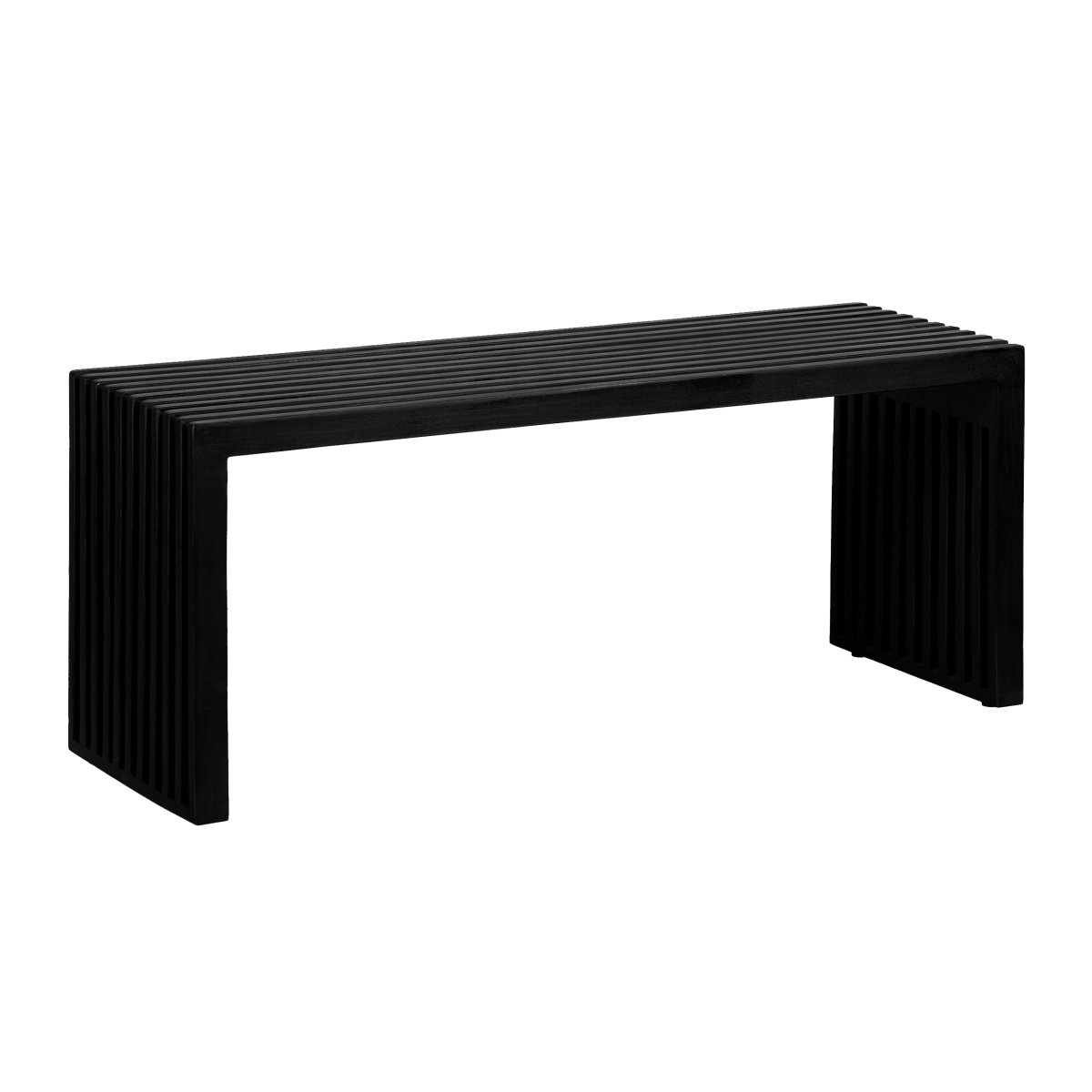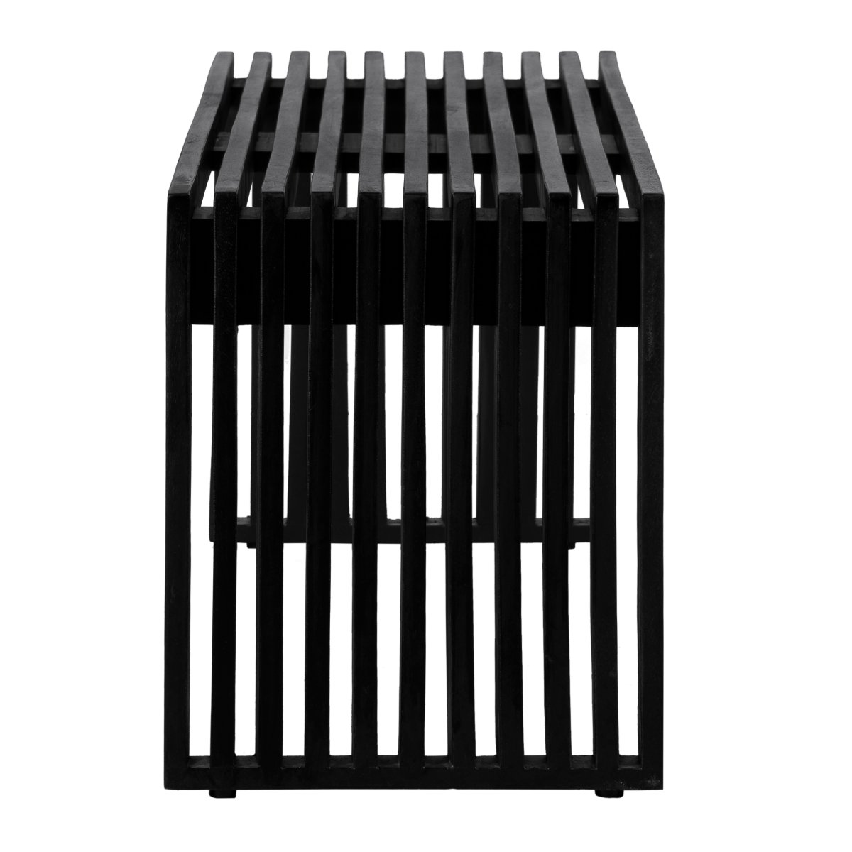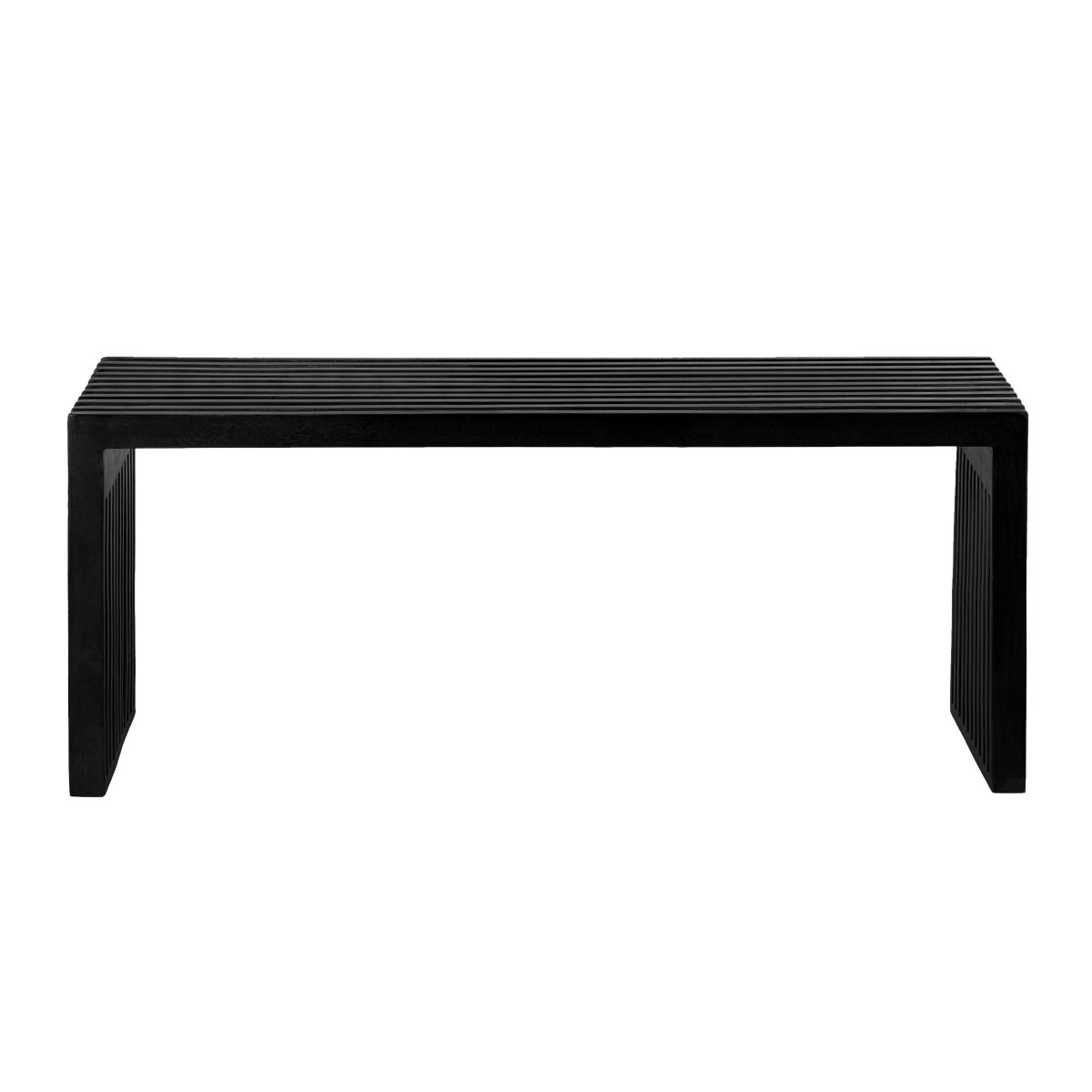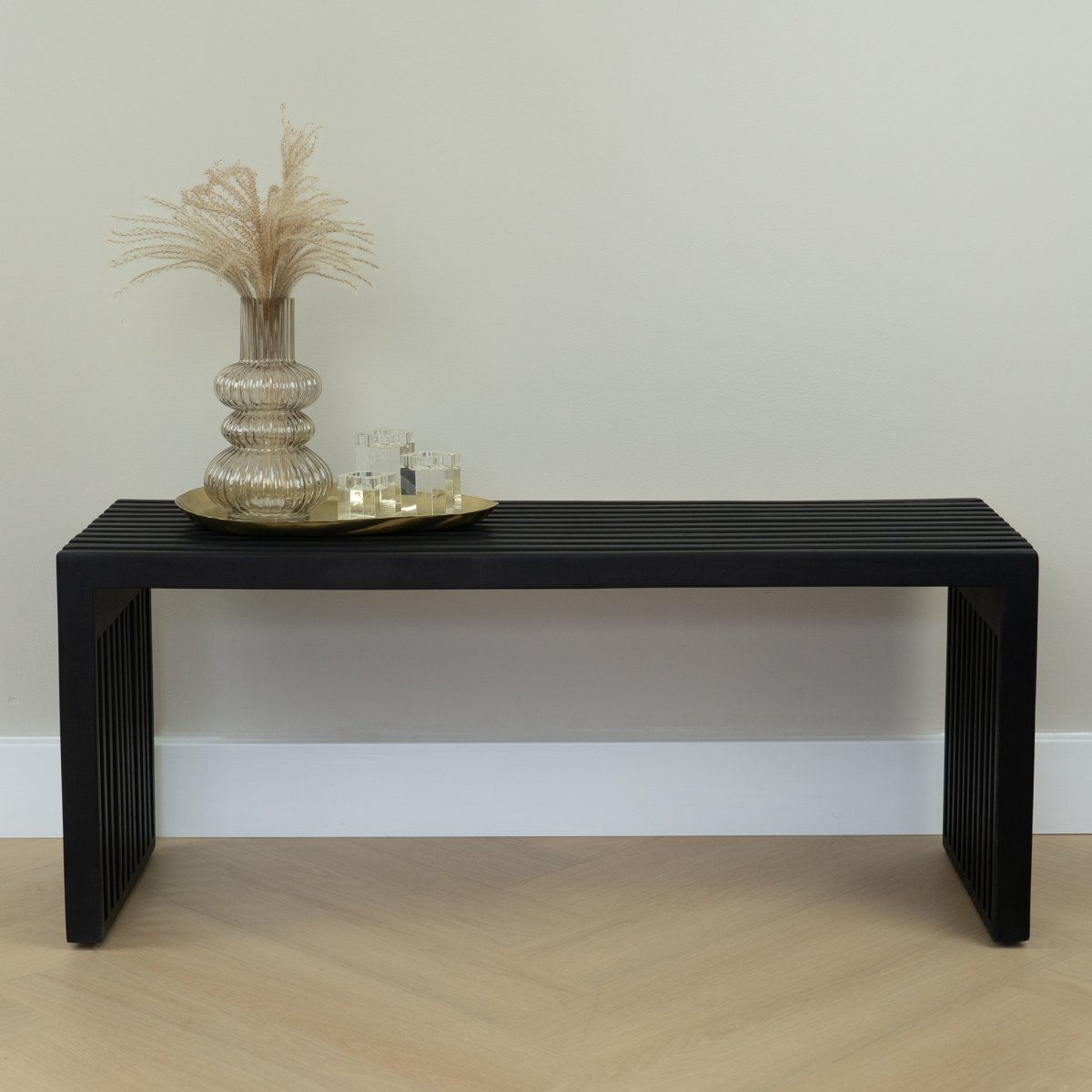 Met zijn strakke lijnen en zwarte afwerking brengt dit zwarte bankje een eigentijdse en stijlvolle uitstraling naar elke ruimte. Het minimalistische ontwerp maakt het een veelzijdig meubelstuk dat zowel in moderne als in industriële interieurs past.