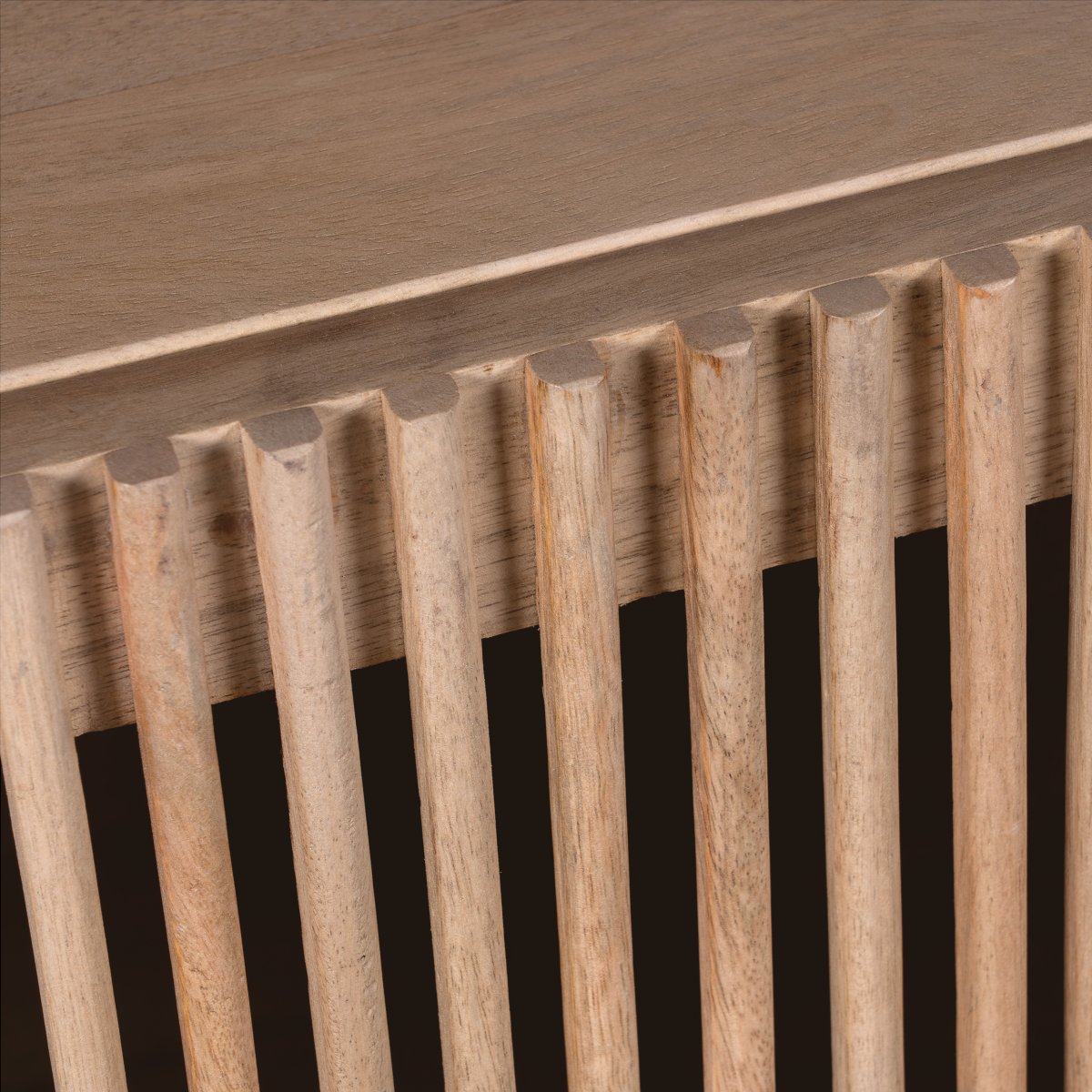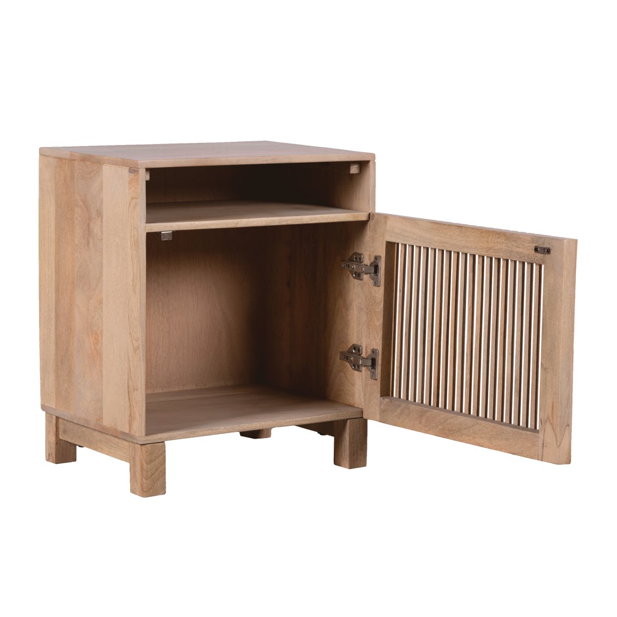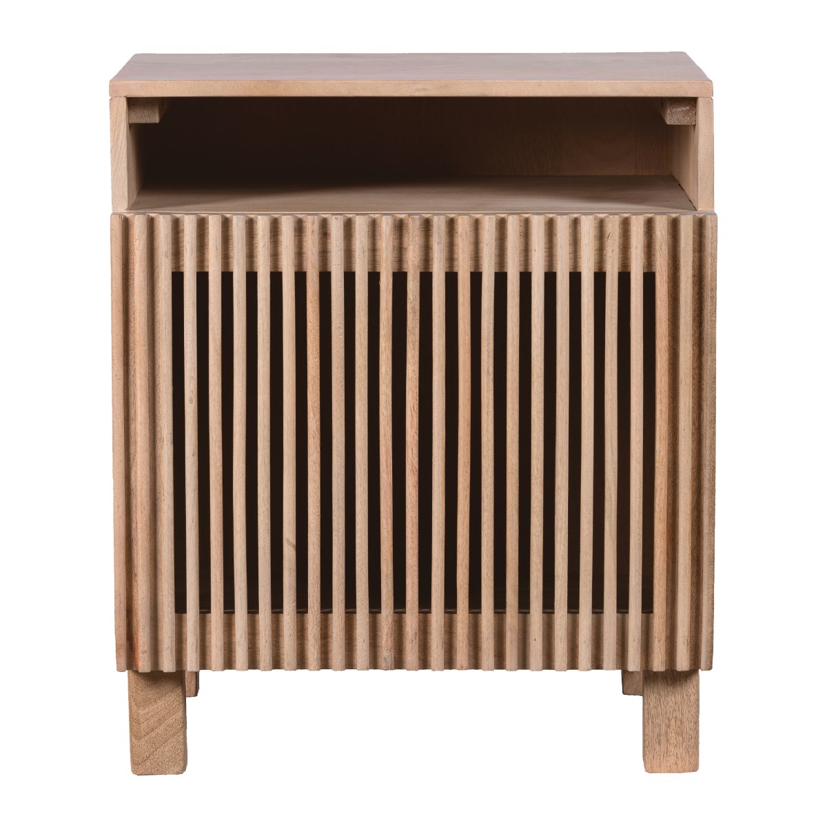 Met een hoogte van 62 cm, een breedte van 42 cm, en een diepte van 53 cm is dit nachtkastje mangohout compact genoeg om in elke slaapkamer te passen, zonder aan opbergruimte in te boeten. Het beschikt over een open vak en een ruime kast, ideaal voor het opbergen van spullen die je binnen handbereik wilt hebben.