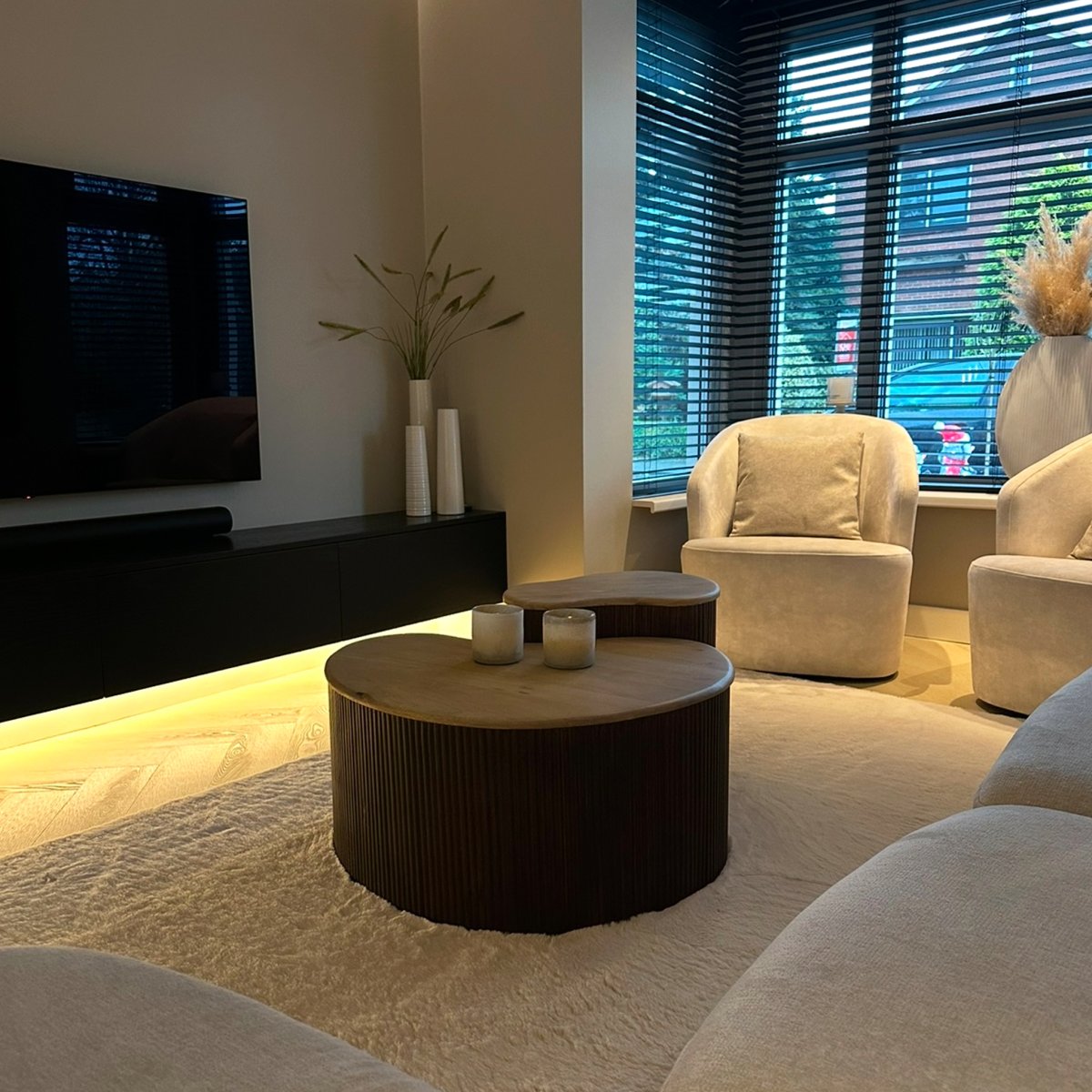 Deze organische salontafel kan perfect gecombineerd worden met de andere tafel van de Lena collectie. Creëer een speels en dynamisch effect door de verschillende vormen en hoogtes te combineren. Dit geeft je interieur een unieke en persoonlijke touch.