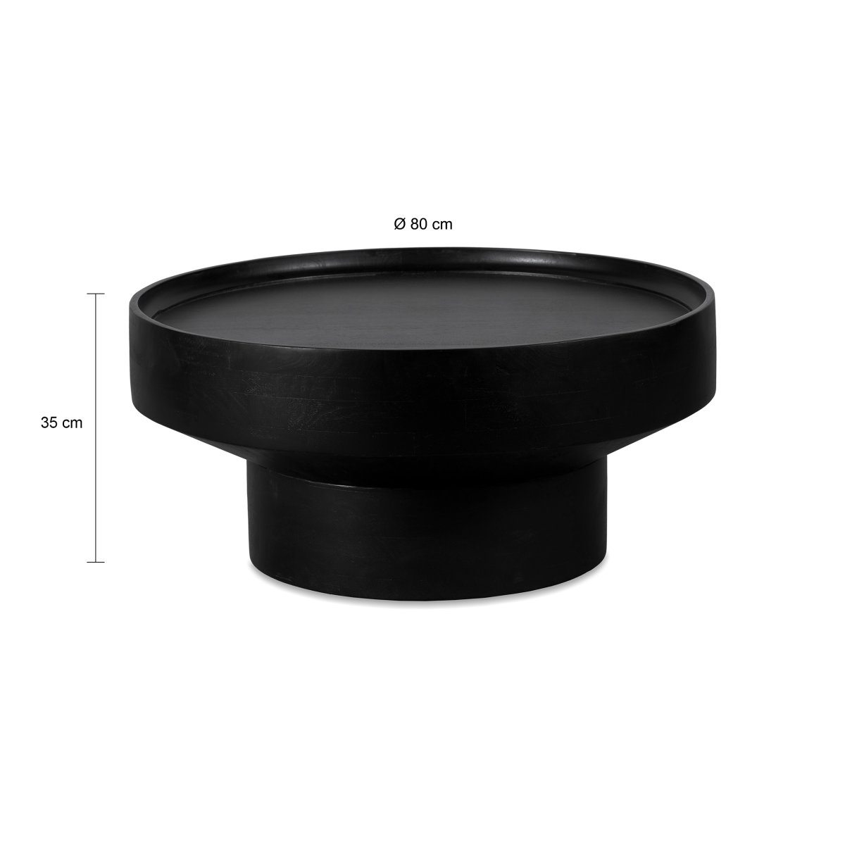 Maak je interieur compleet met de ronde, zwart afgewerkte mangohouten salontafel Luus