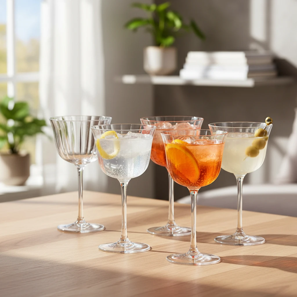 - Perfect voor cocktails zoals Martinis, Gin Fizz en Aperol Spritz dankzij de brede, ondiepe kelk.