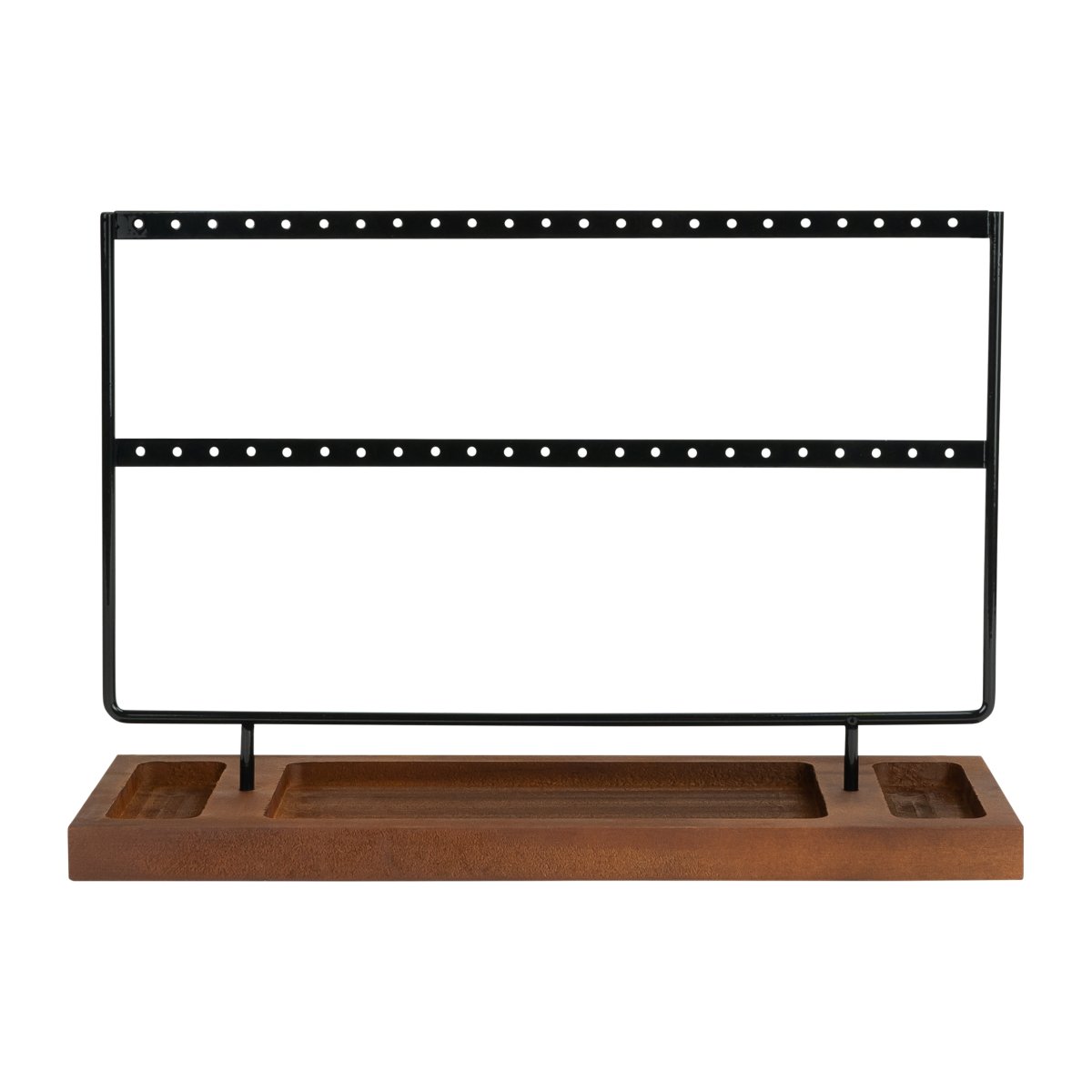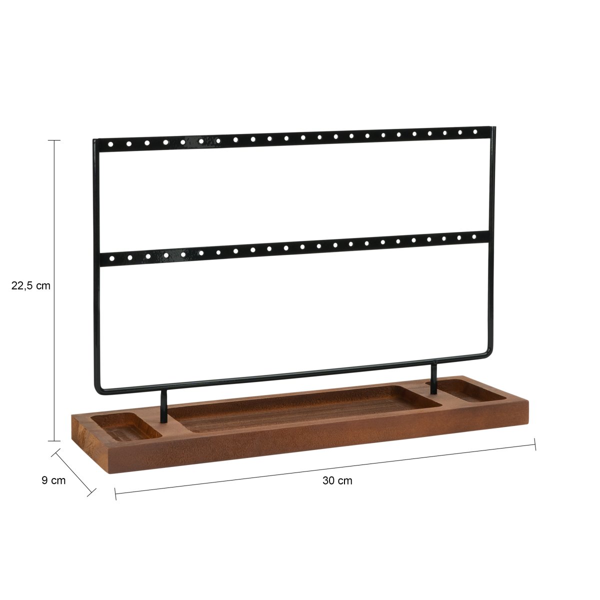 Dit LYVION oorbellenrekje voor 13 oorbellen is niet alleen heel erg praktisch, maar ziet er ook nog eens mooi uit. Het rekje is uitgevoerd in het zwart met donkerbruin. Dit is een stijlvolle combinatie die perfect in te passen is in diverse woonstijlen. Zet het oorbellenrekje bijvoorbeeld op je make-up tafel of in de badkamer en geniet keer op keer van je prachtige oorbellen.