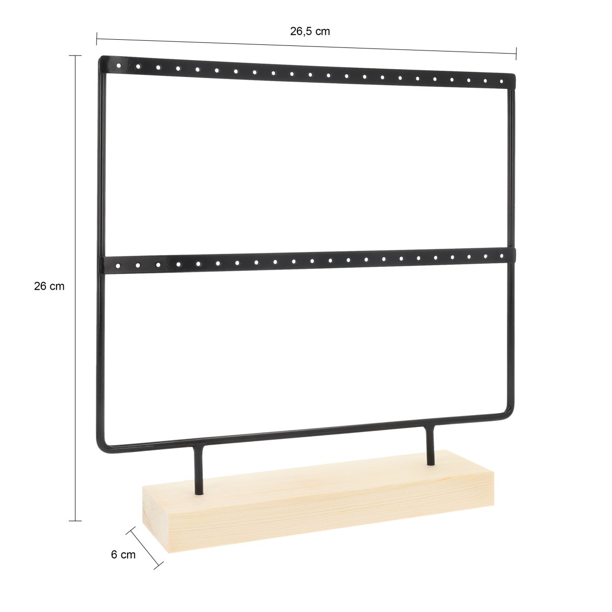Heb jij een prachtige collectie oorbellen en zoek je een manier om die sieraden allemaal netjes op te bergen? Dan is dit grote oorbellenrekje voor 22 paar oorbellen ideaal voor jou. Deze oorbellenhouder biedt plaats aan maar liefst 22 paar oorbellen. Je hangt de oorbellen heel eenvoudig door de gaatjes heen. Zo is het oorbellenrekje niet alleen een sieradenhouder, maar ook meteen een oorbellen display. Als je andere oorbellen in wilt doen, zie je eenvoudig waar ze hangen. Ook raak je zo geen oorbellen kwijt en heb je meteen beide exemplaren te pakken.