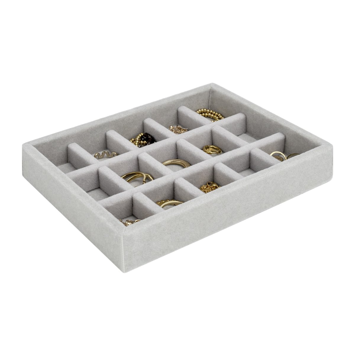 Kun jij ook zo genieten van mooie sieraden? Maar heb je nu niet echt een goede plek om al je dierbare sieraden in op te bergen? Dan is dit sieradendoosje met maar liefst 15 vakken precies wat jij nodig hebt. In dit fluwelen sieradenkistje is voldoende ruimte voor al jouw kleine sieraden. Omdat het sieradendoosje is bekleed met zacht grijs fluweel, liggen de sieraden bovendien veilig. Je hoeft niet bang te zijn dat er iets gekrast of beschadigd raakt. Dat is wel zo fijn om te weten.