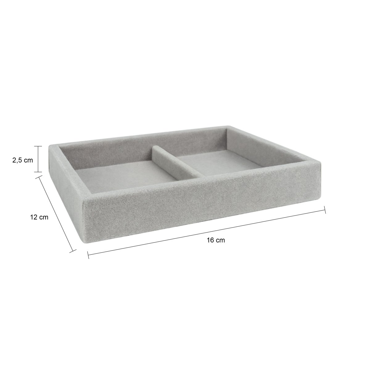 Deze sieradenhouder is gemaakt van zacht velvet materiaal. Hierdoor ziet het sieradendoosje met 2 vakken er mooi uit, maar is het ook direct een veilige opbergplaats voor je waardevolle sieraden. Het fluweel zal jouw oorbellen, ringen en armbanden niet beschadigen. Zet een doosje op je make-up tafel of in de badkamer en je hebt je sieraden altijd bij de hand. Heb jij niet voldoende aan twee vakjes? Combineer dan meerdere van deze sieradendoosjes met elkaar en creëer je eigen veilige plek voor al jouw accessoires.