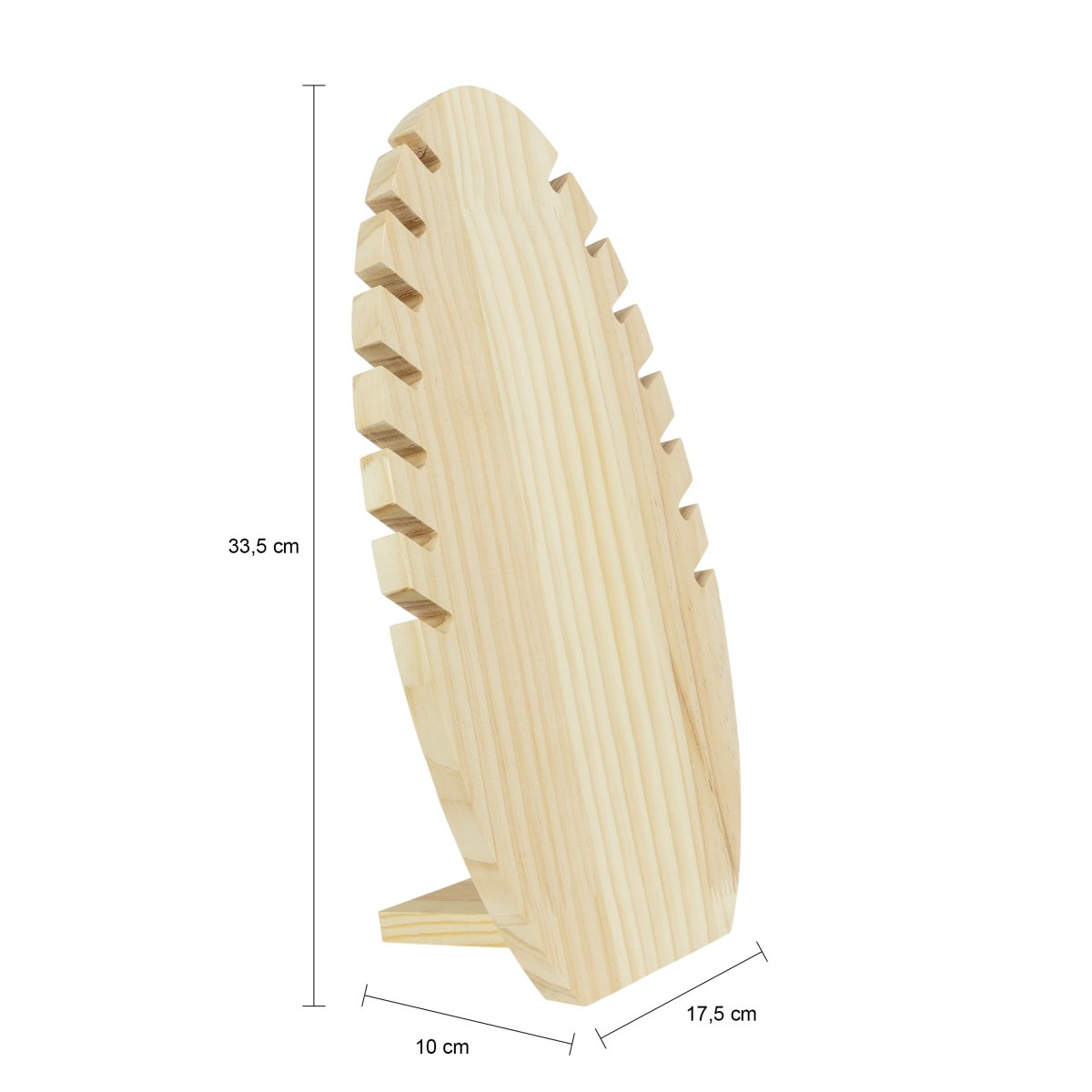 Doordat deze sieradenhouder met bladvorm design gemaakt is van hout, krijgt het geheel direct een natuurlijke uitstraling. Door de neutrale kleur combineer je de sieradenhouder gemakkelijk in elk type interieur. Plaats de houder op je make-up tafel of in de badkamer en kies elke dag met veel gemak en plezier de mooiste sieraden uit. Wat draag jij vandaag?