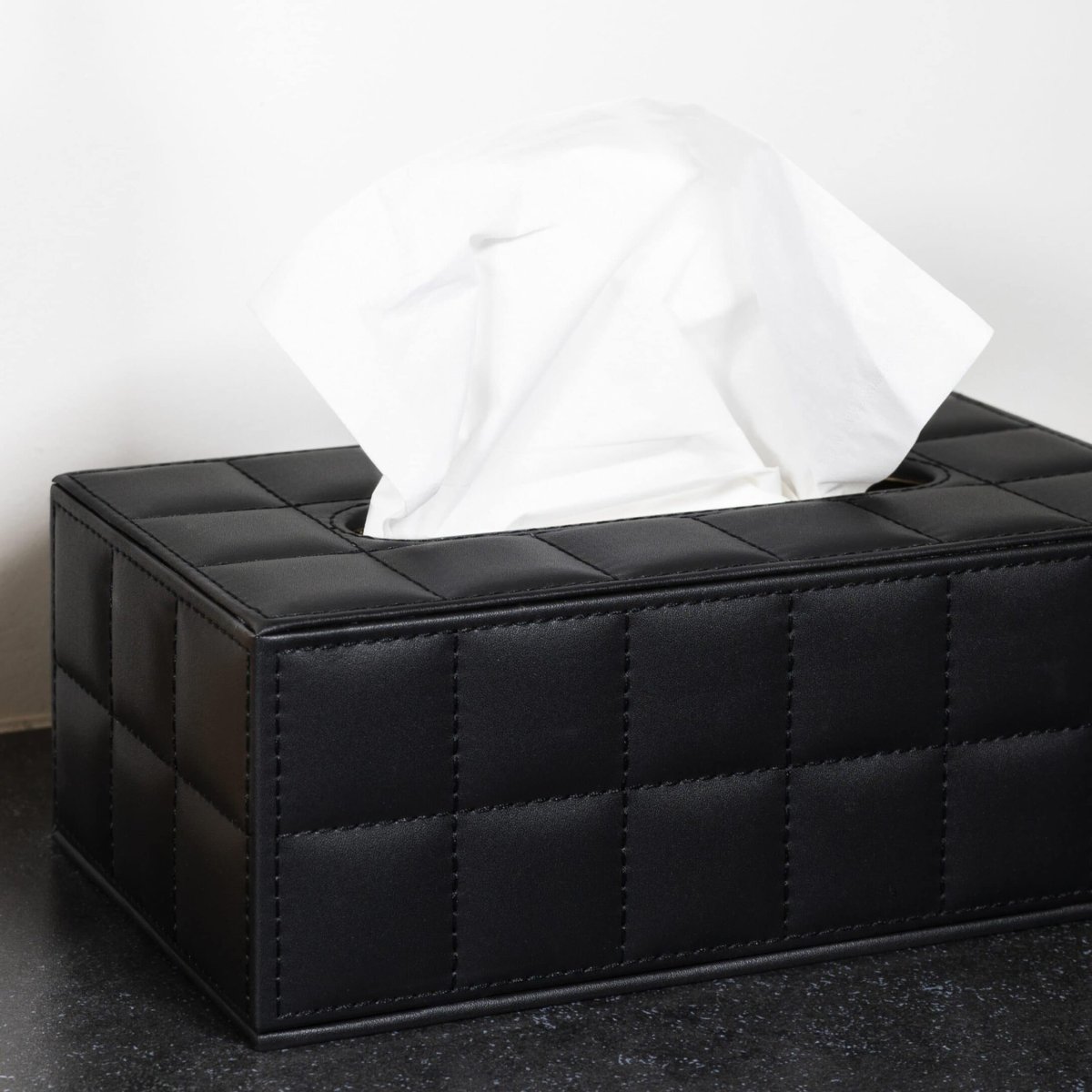 Een zwart leren tissuedoos, omdat jij oog hebt voor detail