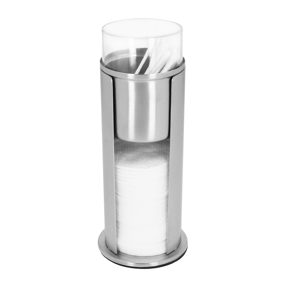 Deze wattendispenser is erg eenvoudig in gebruik. De boven- en onderkant zijn in elkaar te schuiven. In het bovenste bakje bewaar je wattenstaafjes, terwijl je onderin de wattenschijfjes bewaart. Zowel de wattenstaafjes als de wattenschijfjes zijn zo gemakkelijk te pakken. De wattenschijf en wattenstaafjes houder ziet er door het zilverkleurige RVS materiaal erg stijlvol uit en hoeft dus zeker niet uit het zicht weggezet te worden. Zo helpt deze wattenpot bij het organiseren van jouw badkamer.