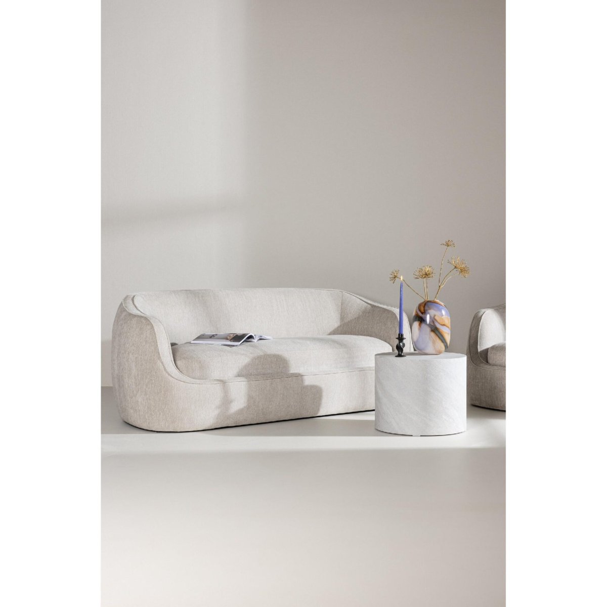 Door de neutrale lichtgrijze kleur laat deze 3-zits sofa zich eenvoudig combineren met warme houttinten, zwarte accenten, metalen details of zachte pasteltinten. Plaats de bank centraal met een rond vloerkleed om de organische vormen te benadrukken, of combineer met een strakke, minimalistische salontafel voor een rustige zithoek. De compacte breedte biedt voldoende zitruimte zonder de kamer te overheersen, terwijl de diepe zit uitnodigt tot lange, ontspannen avonden. De comfortabele zithoogte van 45 cm sluit goed aan bij de meeste salontafels en bijzettafels, wat prettig is tijdens borrels, spelletjesavonden of thuiswerken. Zo vormt deze lichtgrijze 3-zits stoffen bank het stijlvolle middelpunt van een moderne, samenhangende en comfortabele woonkamer.