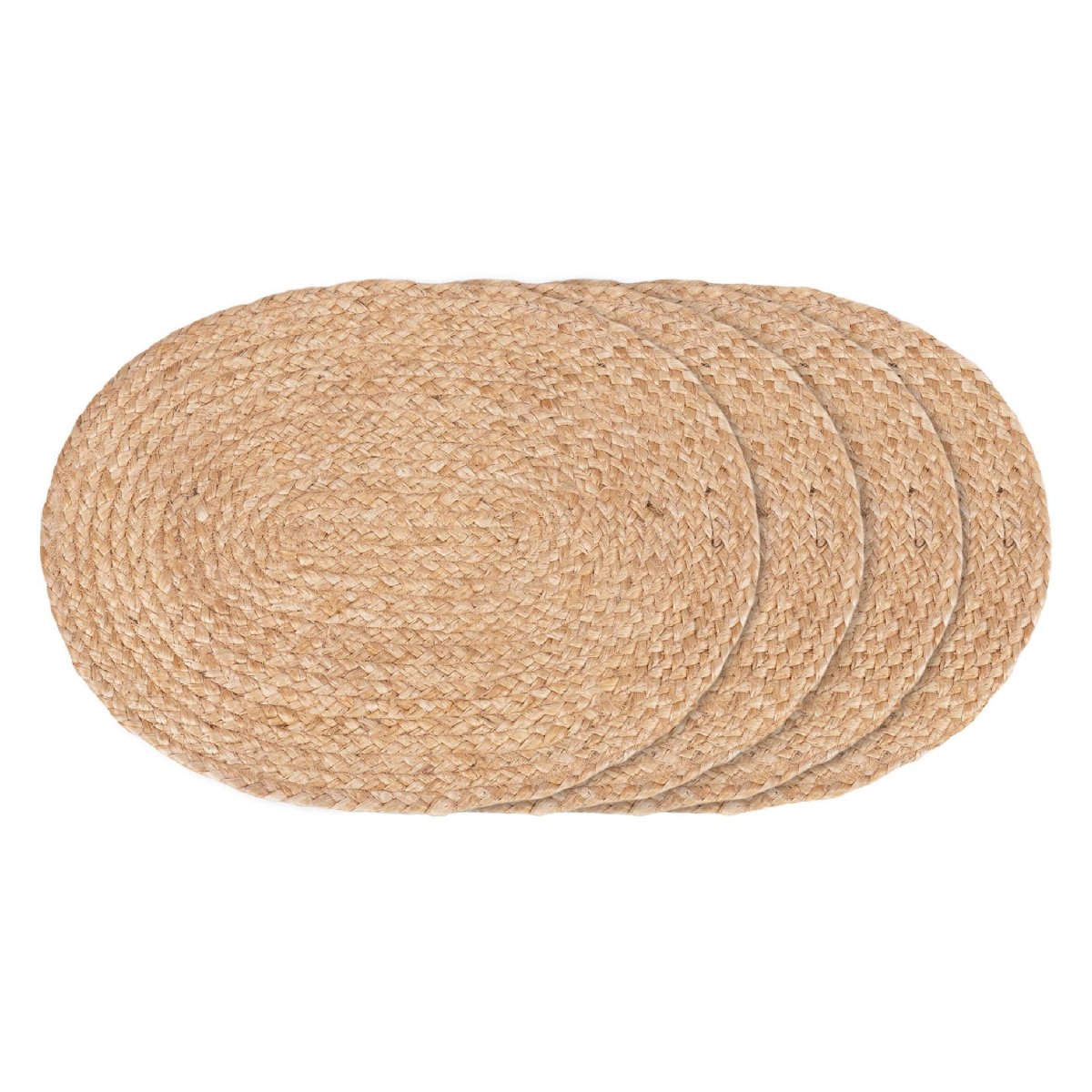 Met deze set van vier ovale placemats van gevlochten jute geef je elke eettafel direct een natuurlijke, warme en stijlvolle uitstraling. De bruine natureltint combineert moeiteloos met servies in allerlei kleuren en interieurstijlen, van landelijk en boho tot modern en Scandinavisch. De jute placemats beschermen je tafelblad tegen krassen, vlekken en hitte van borden en pannen, terwijl het royale formaat van 35 x 45 cm ruim voldoende dekking biedt onder borden, bestek en glazen. Dankzij de stevige, duurzame jutevezels liggen de placemats mooi vlak, schuiven ze niet snel weg en bieden ze subtiele grip. Ideaal voor dagelijks gebruik, brunch, diner of feestelijke tafeldecoratie.