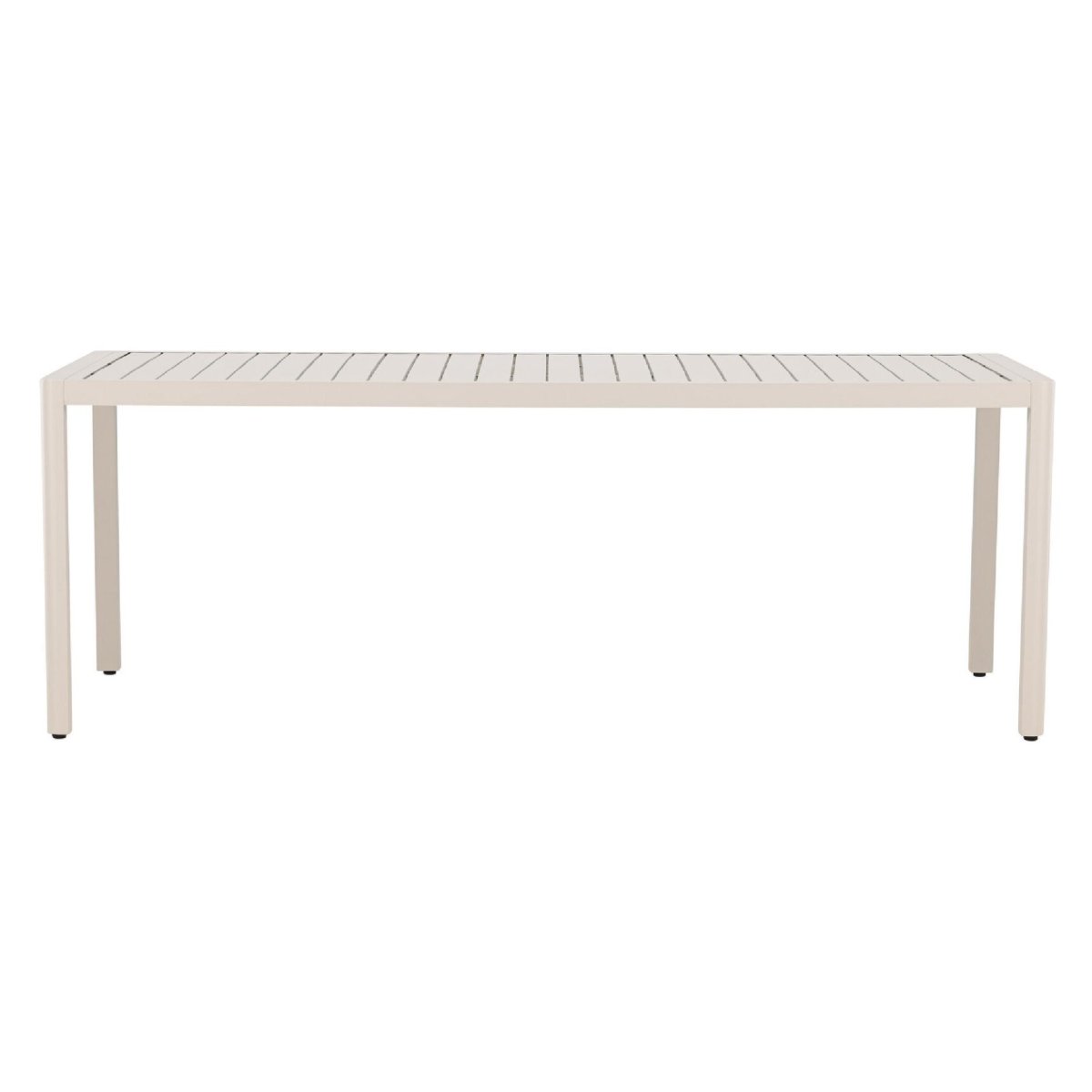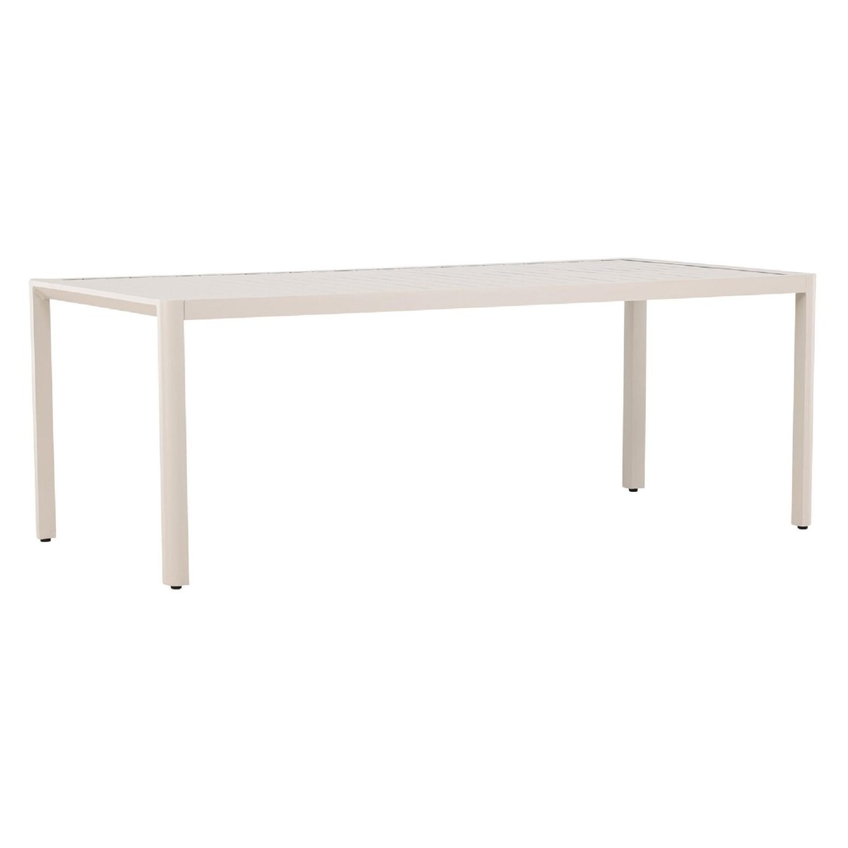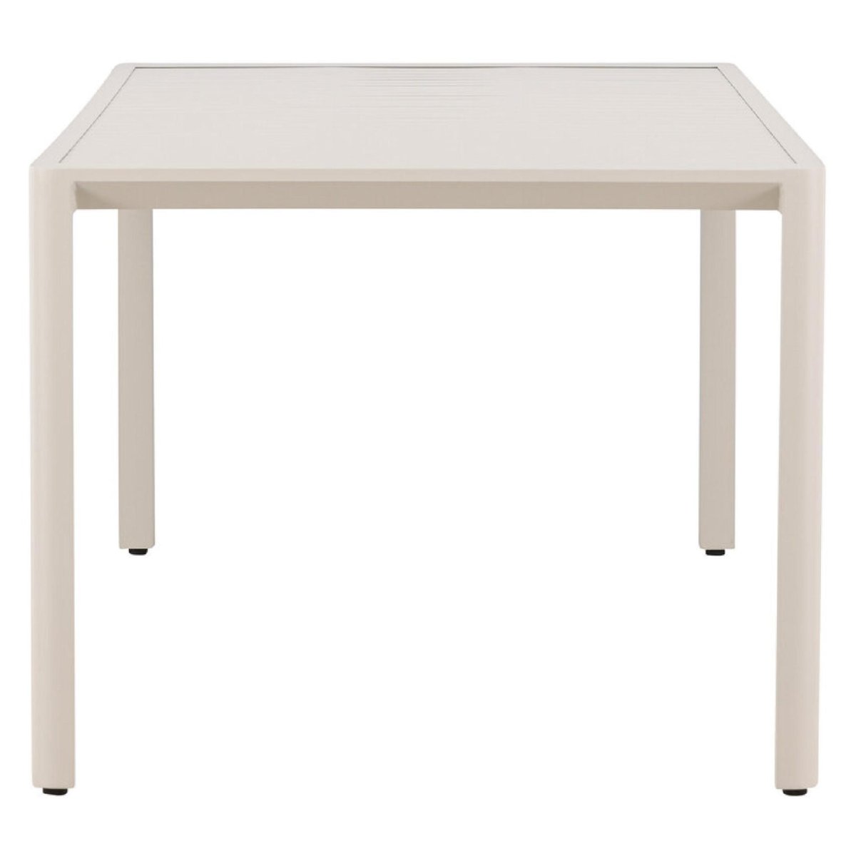 Het geribbelde tafelblad geeft deze aluminium eettafel voor buiten een moderne en toch tijdloze uitstraling. De strakke lijnen en egale beige kleur passen moeiteloos in diverse tuinstijlen: Scandinavisch, minimalistisch, modern industrieel of landelijk. De rechthoekige vorm benut de beschikbare ruimte optimaal en laat zich eenvoudig combineren met verschillende tuinstoelen. Denk aan kuipstoelen van kunststof, textileen of aluminium voor een strak geheel, of ga voor tuinstoelen met kussens voor extra zitcomfort. Dankzij de neutrale beige tint stel je eenvoudig een complete tuinset samen die rust en een luxe sfeer uitstraalt op je terras of veranda.