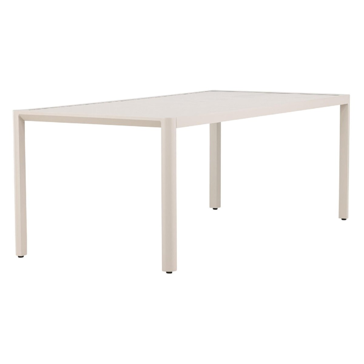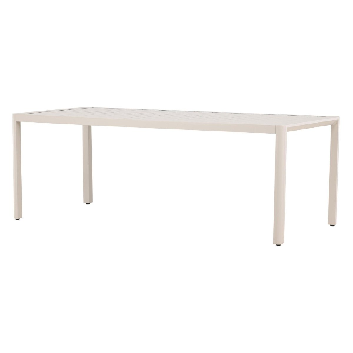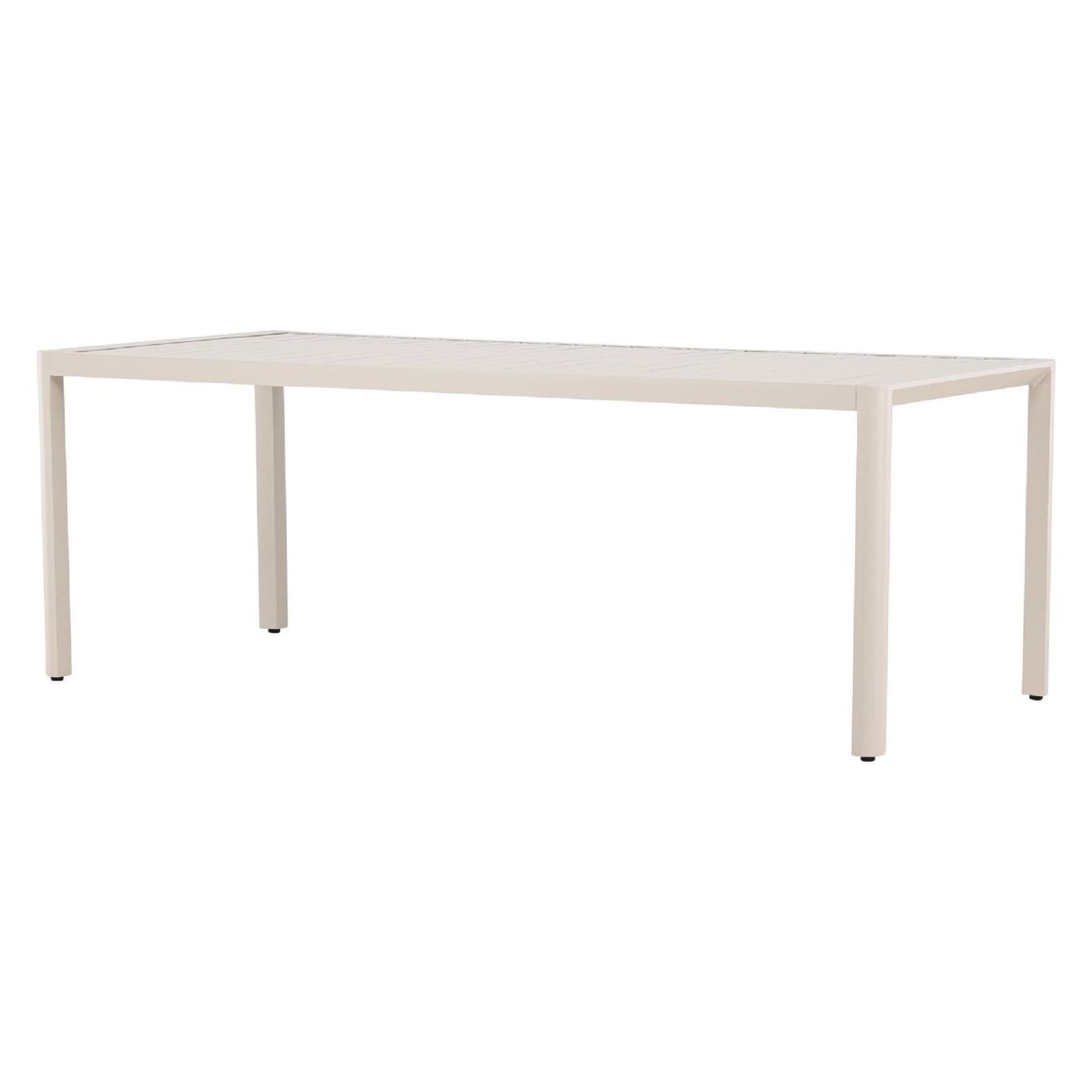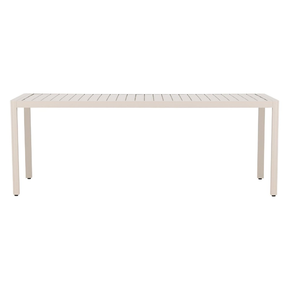 Het geribbelde tafelblad geeft deze aluminium eettafel voor buiten een moderne en toch tijdloze uitstraling. De strakke lijnen en egale beige kleur passen moeiteloos in diverse tuinstijlen: Scandinavisch, minimalistisch, modern industrieel of landelijk. De rechthoekige vorm benut de beschikbare ruimte optimaal en laat zich eenvoudig combineren met verschillende tuinstoelen. Denk aan kuipstoelen van kunststof, textileen of aluminium voor een strak geheel, of ga voor tuinstoelen met kussens voor extra zitcomfort. Dankzij de neutrale beige tint stel je eenvoudig een complete tuinset samen die rust en een luxe sfeer uitstraalt op je terras of veranda.
