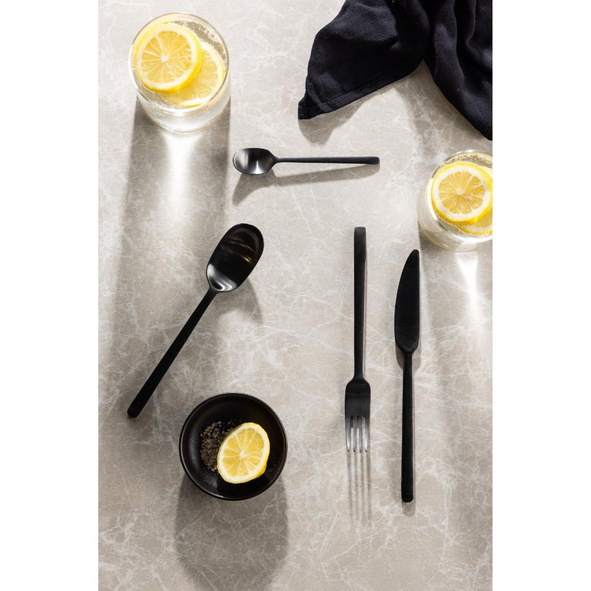 Het mat zwarte design geeft je besteklade én tafelsetting een directe upgrade. De egale, niet-glanzende afwerking oogt modern, strak en minimalistisch, waardoor dit zwarte bestek moeiteloos combineert met stoneware borden, porselein, houten planken of glaswerk. De diepe, donkere kleur zorgt voor een krachtig contrast, waardoor gerechten en tafeldecoratie extra goed tot hun recht komen.