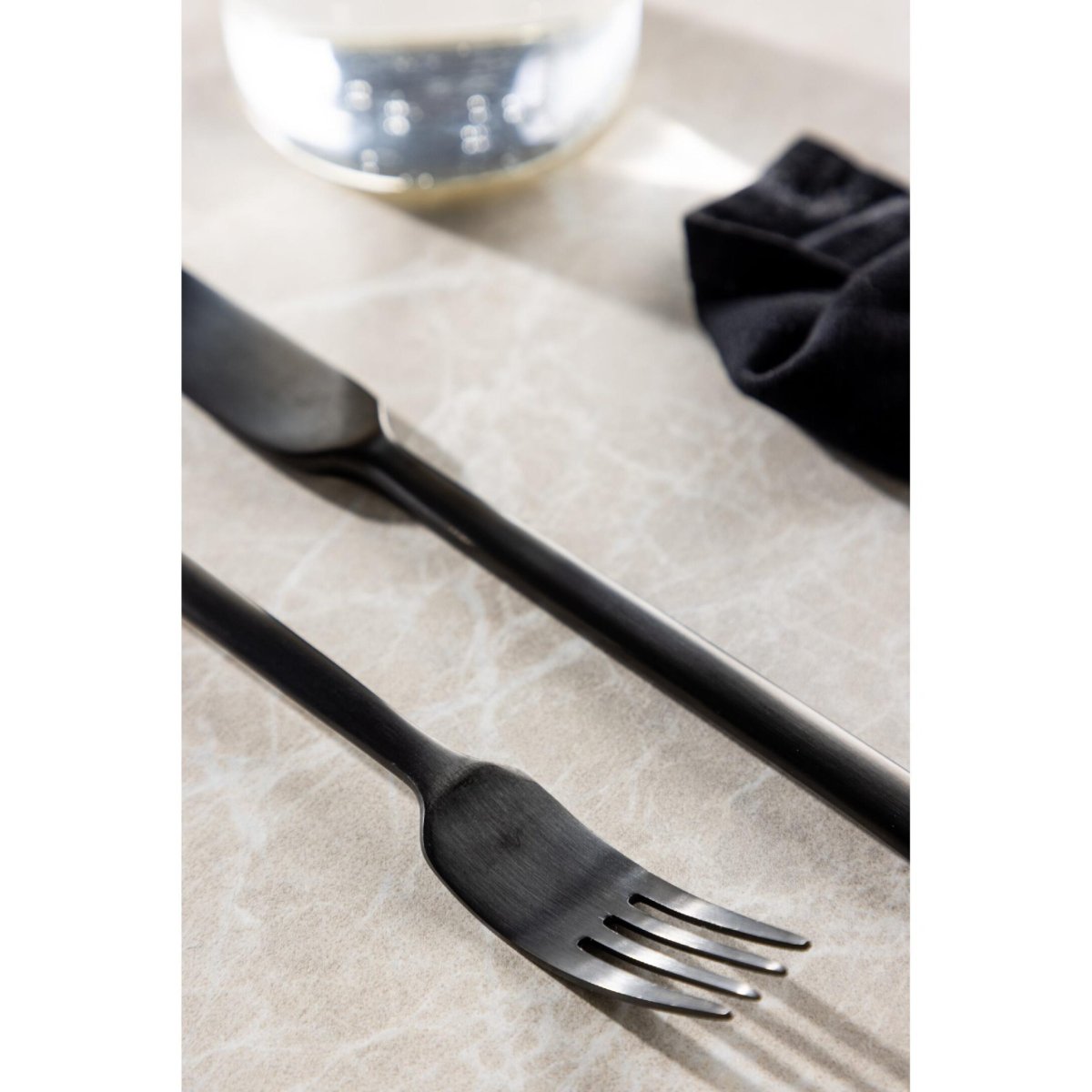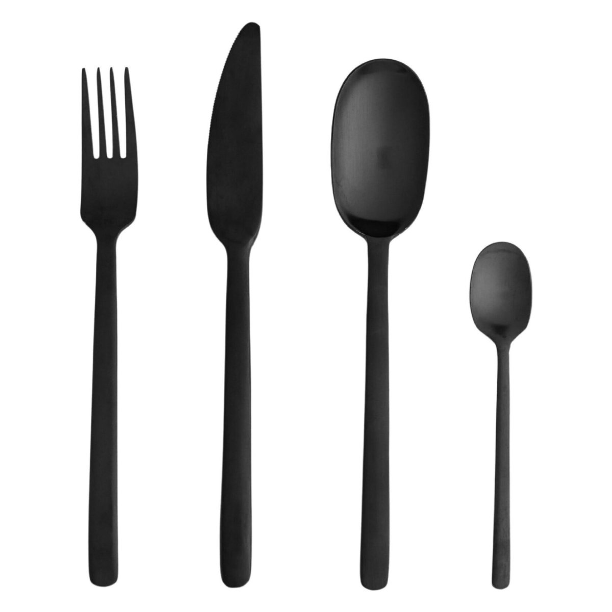 Roestvrij staal (RVS) staat bekend om zijn stevigheid, roestbestendigheid en langdurige vormvastheid – perfect voor bestek dat je dagelijks gebruikt. De matte zwarte coating geeft extra karakter en maakt deze set tot een echte blikvanger op tafel. Tegelijkertijd is het materiaal robuust genoeg om jarenlang mooi te blijven bij zorgvuldig gebruik.