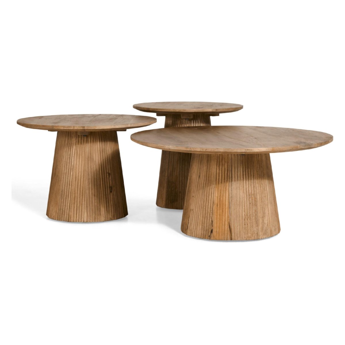 Deze ronde bijzettafel van massief mangohout is een perfecte match voor een Scandinavisch interieur en brengt direct warmte in je woonkamer, slaapkamer of hal. Met zijn compacte formaat van Ø50 cm en een hoogte van 46 cm is dit model ideaal als side table naast de bank, bij een fauteuil of als nachtkastje. Het lichtbruine blad toont prachtig de natuurlijke houtnerf, terwijl het luxueuze onderstel met half ronde latjes zorgt voor een rustige, minimalistische look met een speelse twist. Zo haal je een tijdloze mangohouten bijzettafel in huis die stijl, functionaliteit en natuurlijke materialen moeiteloos combineert.