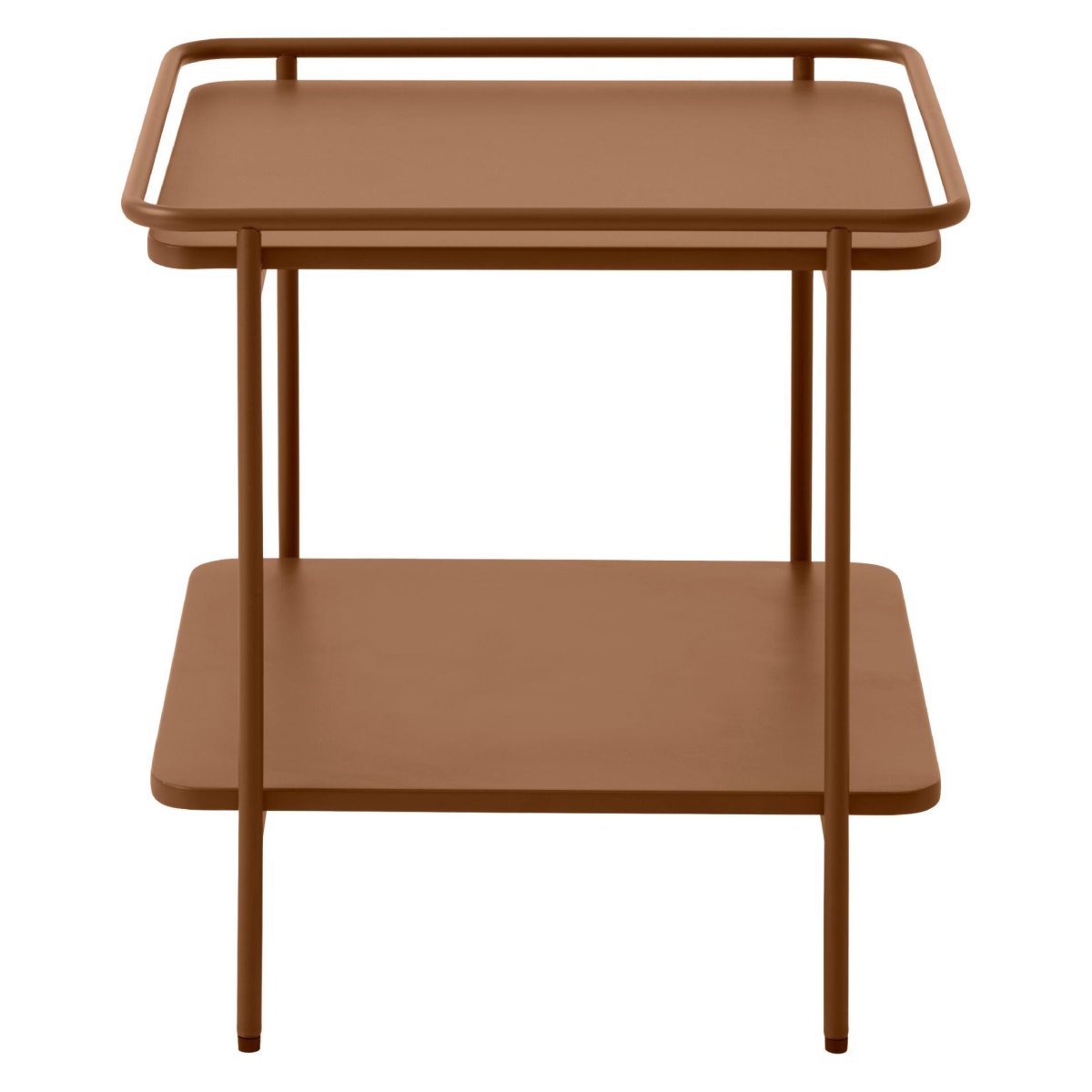 De terracotta bijzettafel geeft een warme, natuurlijke touch aan je interieur en laat zich moeiteloos combineren met moderne, Scandinavische én mediterrane woonstijlen. Het vierkante tafelblad oogt strak en minimalistisch, waardoor je de tafel gemakkelijk tegen een bank, wand of in een hoek kunt plaatsen. Dankzij de twee niveaus creëer je direct extra functionaliteit én visuele rust: boven gebruik je de tafel voor een koffiekopje, vaas of kaarsen, onder leg je boeken, afstandsbedieningen of een plaid. De hoogwaardige afwerking in RAL 050 4040 (Madeira Brown) zorgt voor een diepe, aardse terracottakleur die mooi contrasteert met zowel lichte als donkere meubels. Zo voeg je met deze compacte metalen side table in één keer diepte, contrast en warmte toe aan je woonkamer, slaapkamer of hal.