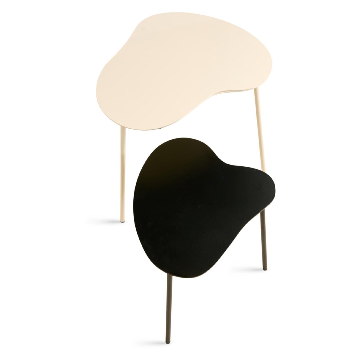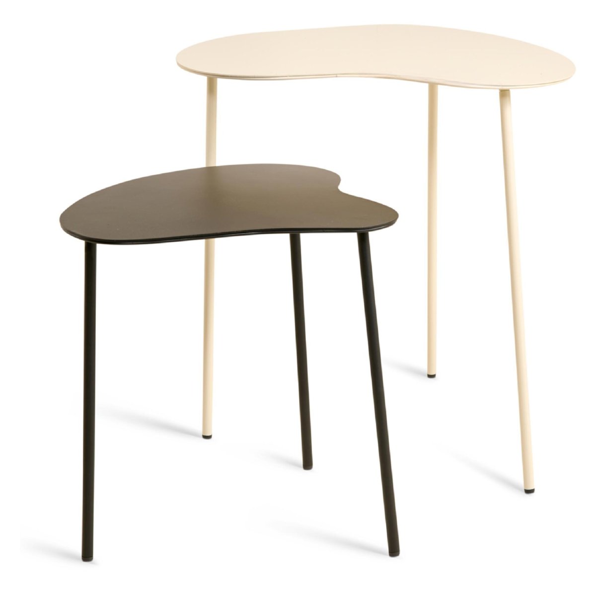 Deze set van twee zwarte metalen bijzettafels is ontworpen voor maximale flexibiliteit in huis. Gebruik de tafels samen als speelse salontafelset voor de bank, of plaats ze los van elkaar verspreid door het interieur. Eén tafel functioneert perfect als koffietafel bij een fauteuil of leeshoek, terwijl de andere ideaal is als plantenstandaard in een lege hoek of naast een kast. Dankzij het lichte gewicht verplaats je de tafeltjes moeiteloos wanneer je extra oppervlak nodig hebt voor hapjes, drankjes of decoratie tijdens een borrel of filmavond. De verschillende hoogtes creëren automatisch een gelaagd effect in je styling, zodat je decorstukken eenvoudig opbouwt zonder dat het druk oogt. In de slaapkamer gebruik je de tafels als minimalistische nachtkastjes, in de hal als plek voor sleutels en post, en in de studeerkamer als side table voor een bureaulamp, notitieboek of kop koffie. Zo haal je met één set praktische bijzettafels in huis die in elke ruimte tot hun recht komen.