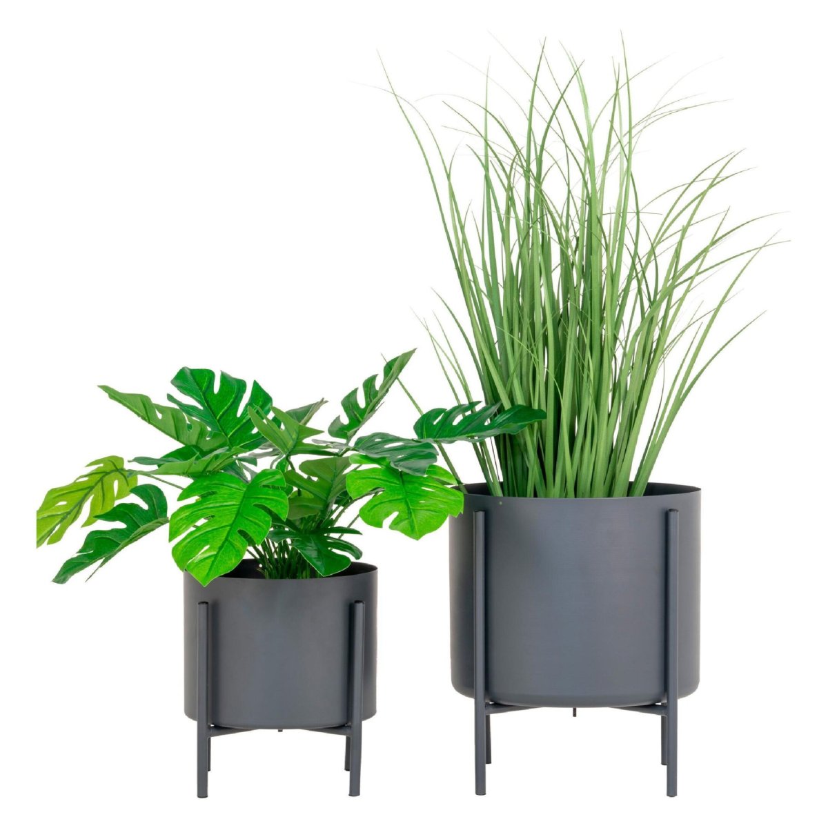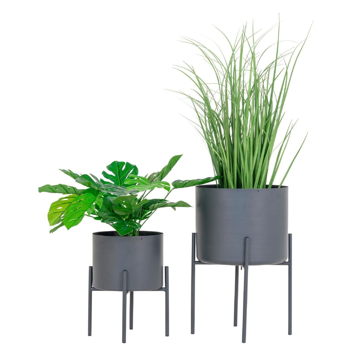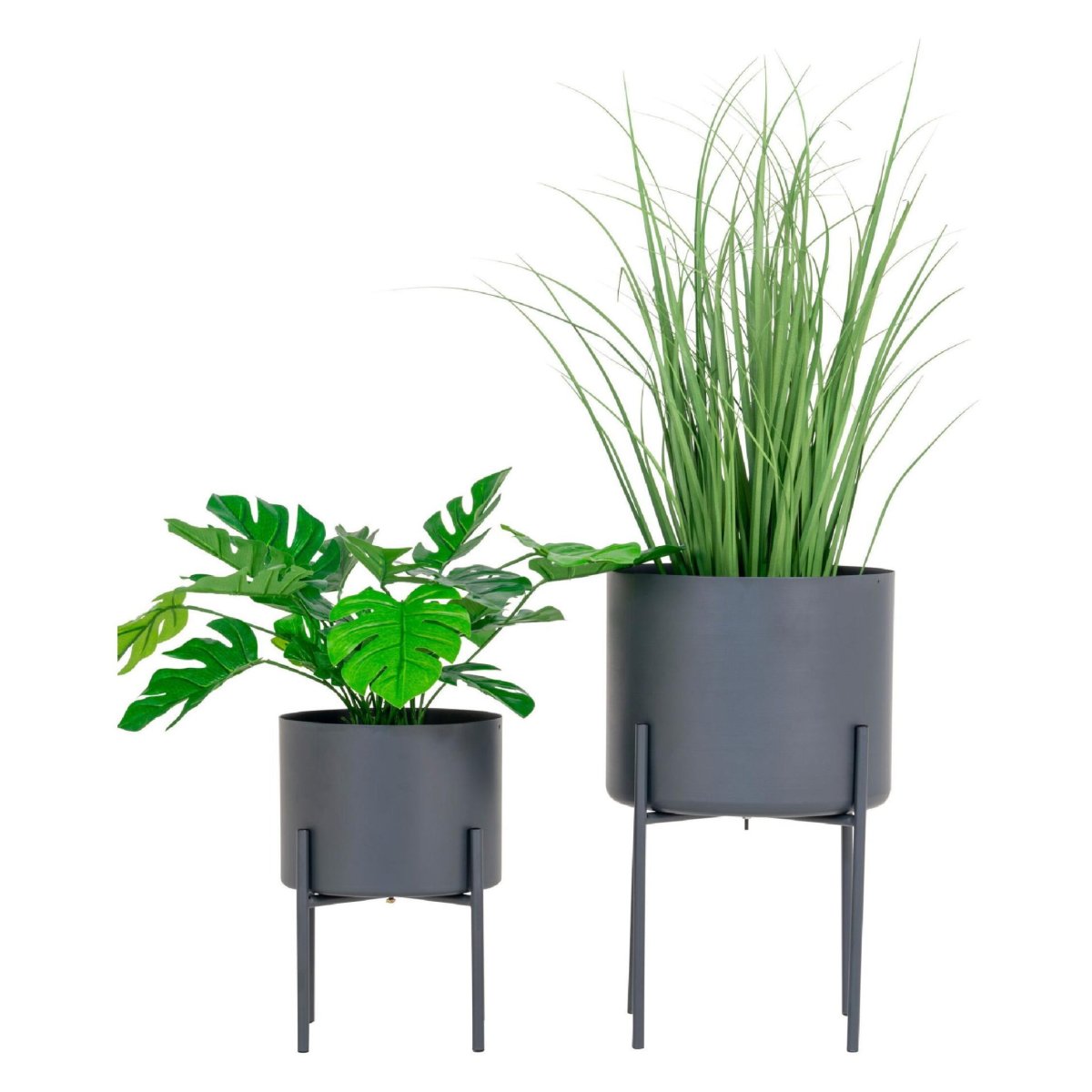 Deze set van 2 grijze stalen bloempotten voegt een strak, industrieel accent toe aan ieder interieur. De ronde plantenbakken in twee formaten geven kamerplanten, siergrassen of kleine boompjes een stijlvolle plek in de woonkamer, hal, keuken of op kantoor. Dankzij de combinatie van massief staal en slanke staaldraadpoten ogen de plantenpotten licht en luchtig, maar blijven ze stevig en stabiel staan. De neutrale grijze kleur laat je planten extra opvallen en sluit naadloos aan bij moderne, Scandinavische en minimalistische woonstijlen. Een praktische én decoratieve plantpot-set, eenvoudig te combineren met allerlei soorten planten, interieurstijlen en materialen.