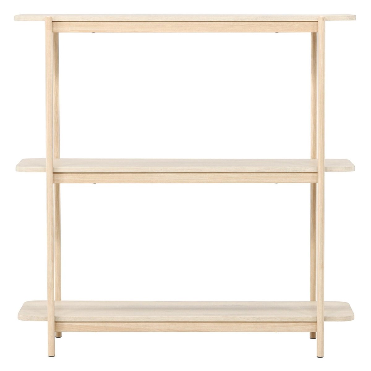 De strakke, open vormgeving maakt deze witgewassen boekenkast tot een tijdloze basis voor elke woonruimte. Je creëert in één oogopslag overzicht: rangschik je favoriete boeken per genre, groepeer fotolijsten en souvenirs, of combineer boeken met vazen, manden en groene planten. De drie royale planken bieden voldoende diepte en breedte, zodat ook grotere koffietafelboeken, opbergboxen en decoratieve objecten eenvoudig een plek vinden. Dankzij het slanke stalen frame en de lichte whitewash blijft de kast luchtig en ruimtelijk ogen, zelfs als je hem vol stylet. Hierdoor laat deze open wandkast zich moeiteloos combineren met natuurlijke houttinten, zwart staal, betonlook of zachte pastelkleuren. Zo haal je een praktische en stijlvolle boekenkast in huis waarin opbergen en presenteren naadloos samenkomen.