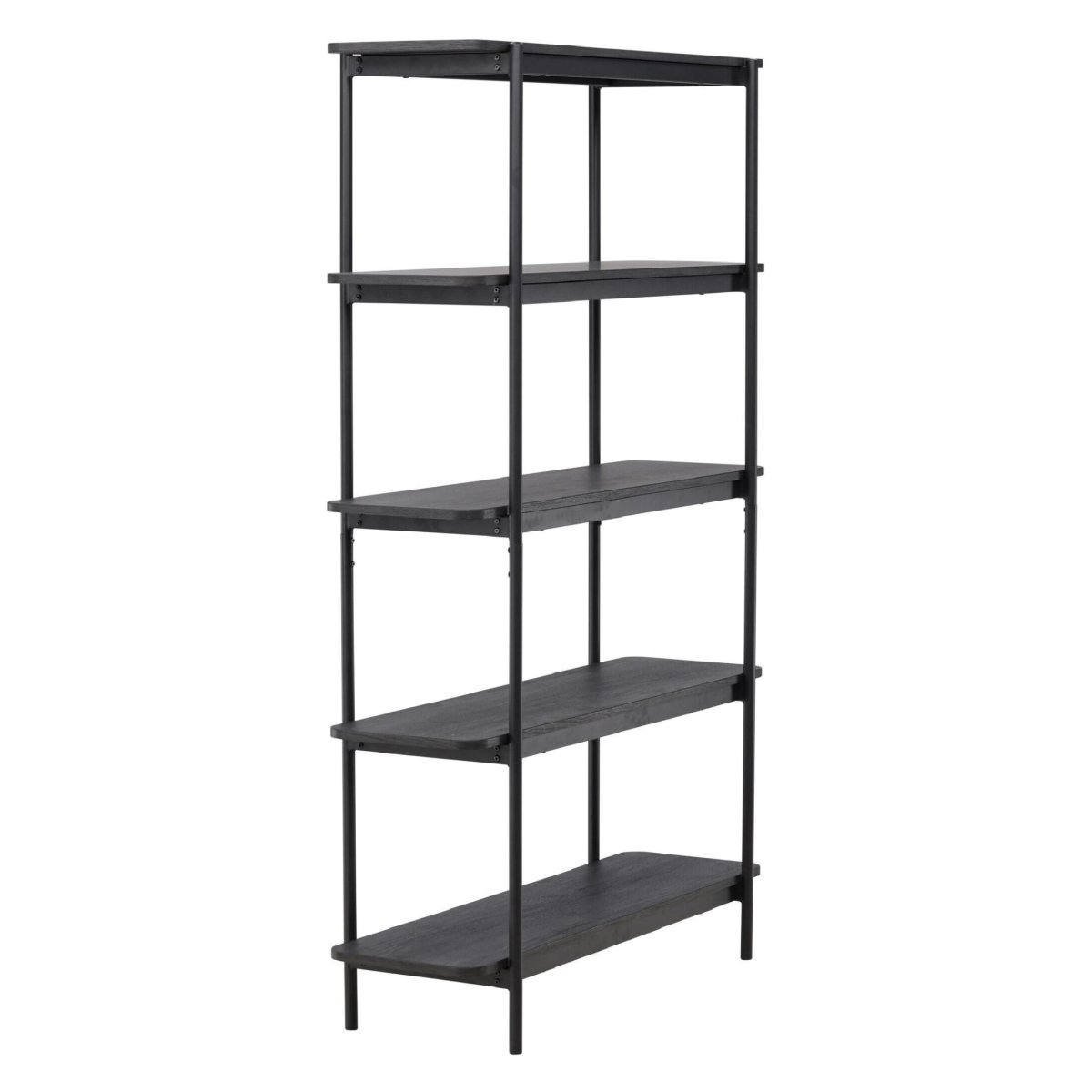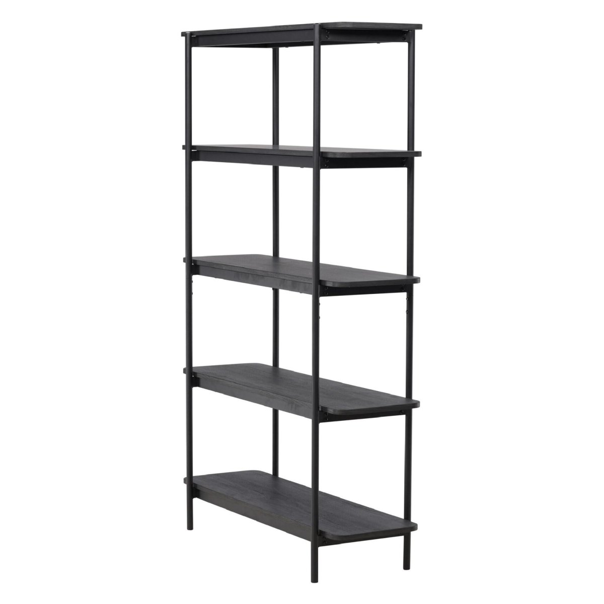 De open boekenkast is gemaakt van FSC-gecertificeerd hout, zodat je kiest voor verantwoord bosbeheer én een duurzaam interieur. De zwarte MDF-planken hebben een strakke, egale afwerking die moeiteloos combineert met diverse woonstijlen: modern, industrieel, Scandinavisch of minimalistisch. Het zwarte stalen frame geeft extra stabiliteit én een luchtige, elegante uitstraling, waardoor de hoge kast niet massief oogt. De drie royale legplanken bieden meer dan genoeg ruimte voor boekenrijen, designobjecten, vazen, fotolijsten en kamerplanten. Zo creëer je een persoonlijke, stijlvolle opstelling die zowel decoratief als praktisch is en er netjes geordend uit blijft zien.