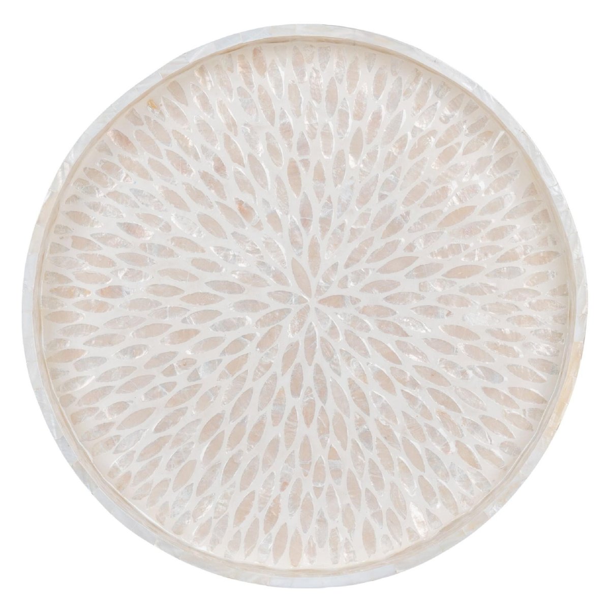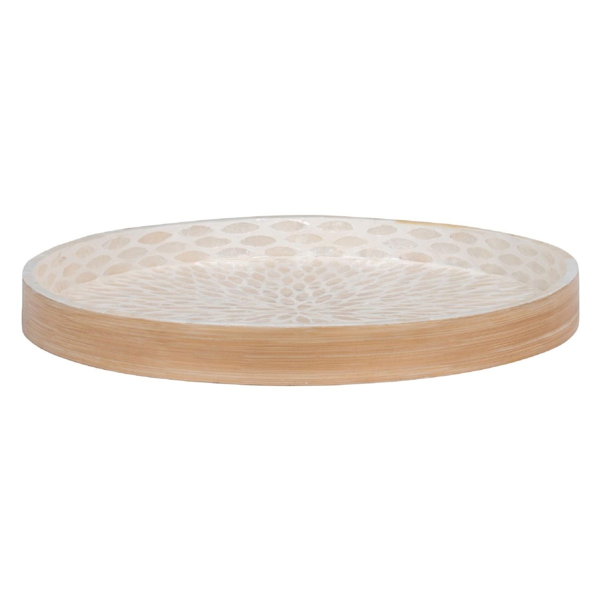 Dit vierkante dienblad is een luxe serveerblad van bamboe met een stevige MDF basis en een verfijnde capiz inleg in een warme beige kleur. Met het royale formaat van 40 x 40 cm en een opstaande rand van 3,5 cm serveer je drankjes, hapjes en accessoires veilig, stabiel en stijlvol. Het gebruik van natuurlijke materialen, de subtiele glans van capiz en het zachte, neutrale kleurbeeld maken dit plateau een blikvanger in een modern, Scandinavisch, landelijk of boho interieur. Gebruik de tray als decoratief dienblad op de salontafel, keukentafel of het dressoir, of als functioneel serveerblad tijdens ontbijt, koffie- of borrelmomenten.