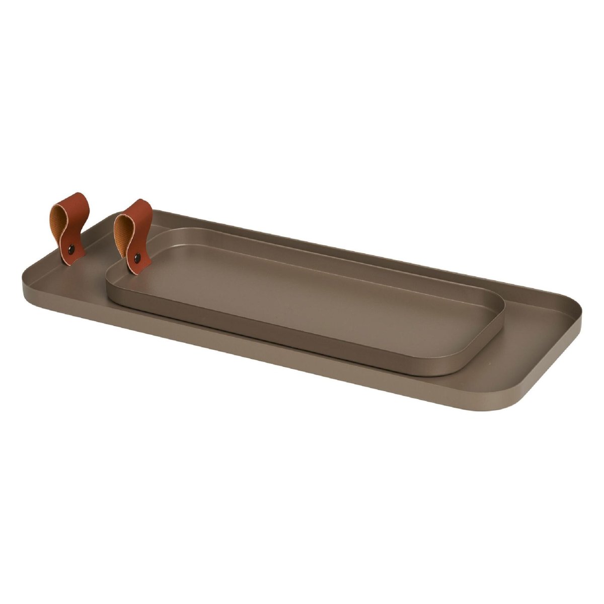 De warme bruine kleur van deze stalen dienbladen voegt direct sfeer en diepte toe aan je interieur. De tint combineert moeiteloos met hout, natuursteen, linnen, keramiek en andere aardetinten en past zowel in lichte als donkere interieurs. Op een licht tafelblad zorgt het dienblad voor een chic contrast; op een donkere ondergrond creëer je een rustig ton-sur-ton effect. Zo schakel je eenvoudig tussen een minimalistische look en een meer cozy, huiselijke sfeer. Combineer de trays met glazen potten, keramische schaaltjes, metalen accessoires of geurkaarsen voor een gelaagd, stijlvol geheel. Dankzij het neutrale, tijdloze design inzetbaar als serveerhulp in de keuken én als decoratief plateau in woonkamer, hal, badkamer of slaapkamer – het hele jaar door.