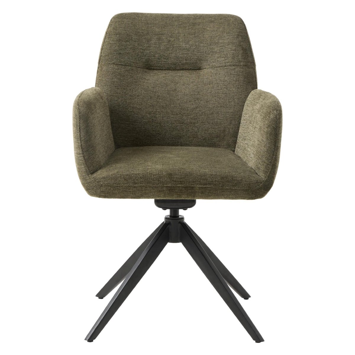 Het zwarte stalen onderstel met vier slanke poten biedt een stabiele, robuuste basis en geeft de stoel een moderne, minimalistische look. De 4-poots draaivoet biedt de voordelen van een draaistoel, maar blijft stevig en in balans, ook bij dagelijks gebruik. Het stalen frame is eenvoudig schoon te maken met een vochtige doek en bestand tegen stoten, waardoor deze eetkamerstoel ideaal is in een druk gezin of huishouden met kinderen en huisdieren. Door de royale armleuningen en ergonomische zitpositie is de stoel niet alleen perfect om aan te eten, maar ook geschikt als comfortabele werkstoel aan de eettafel of voor lange spelletjes- en borrelavonden. Plaats meerdere stoelen rondom de tafel voor een rustig, harmonieus geheel of combineer olijfgroen met andere kleuren voor een speels, persoonlijk effect.