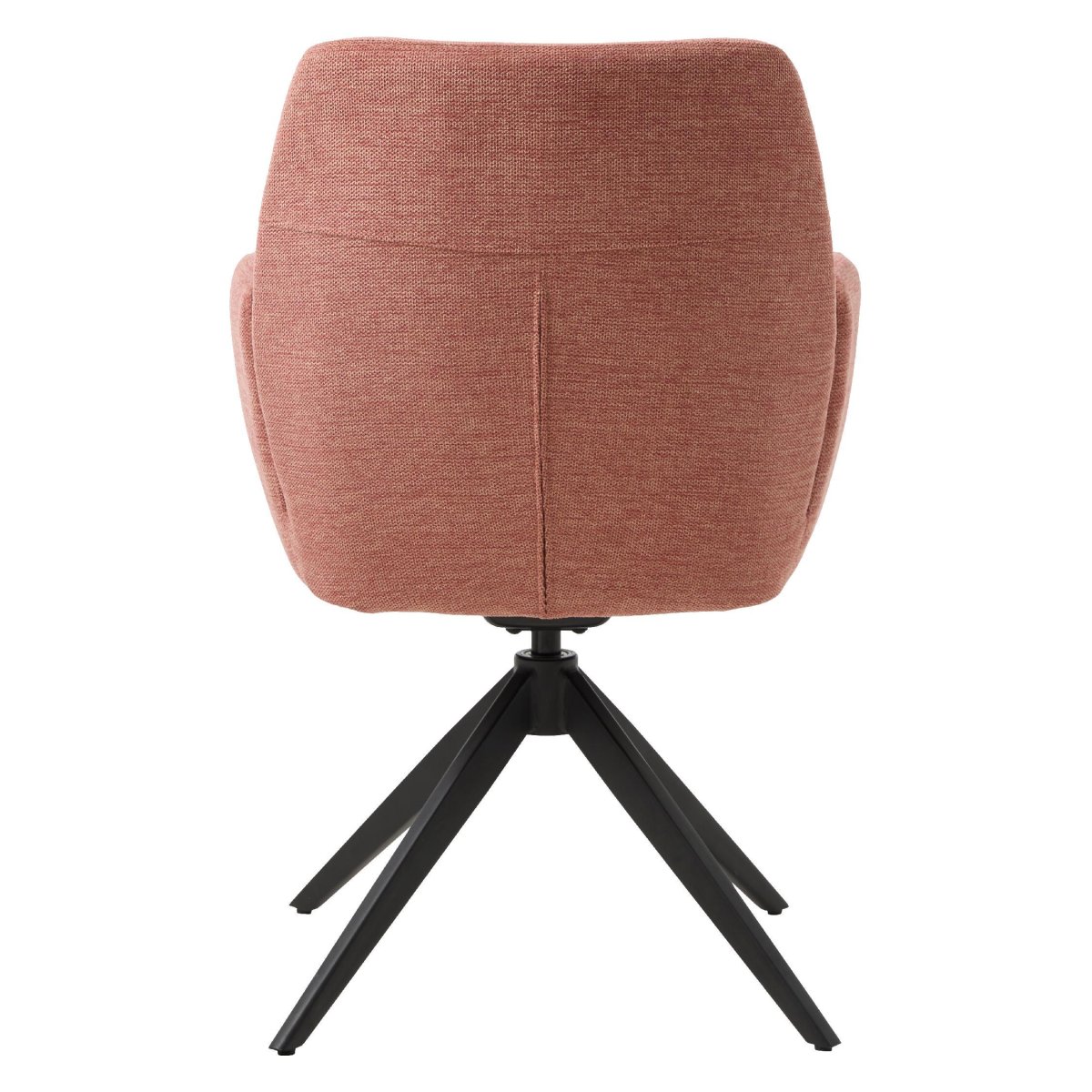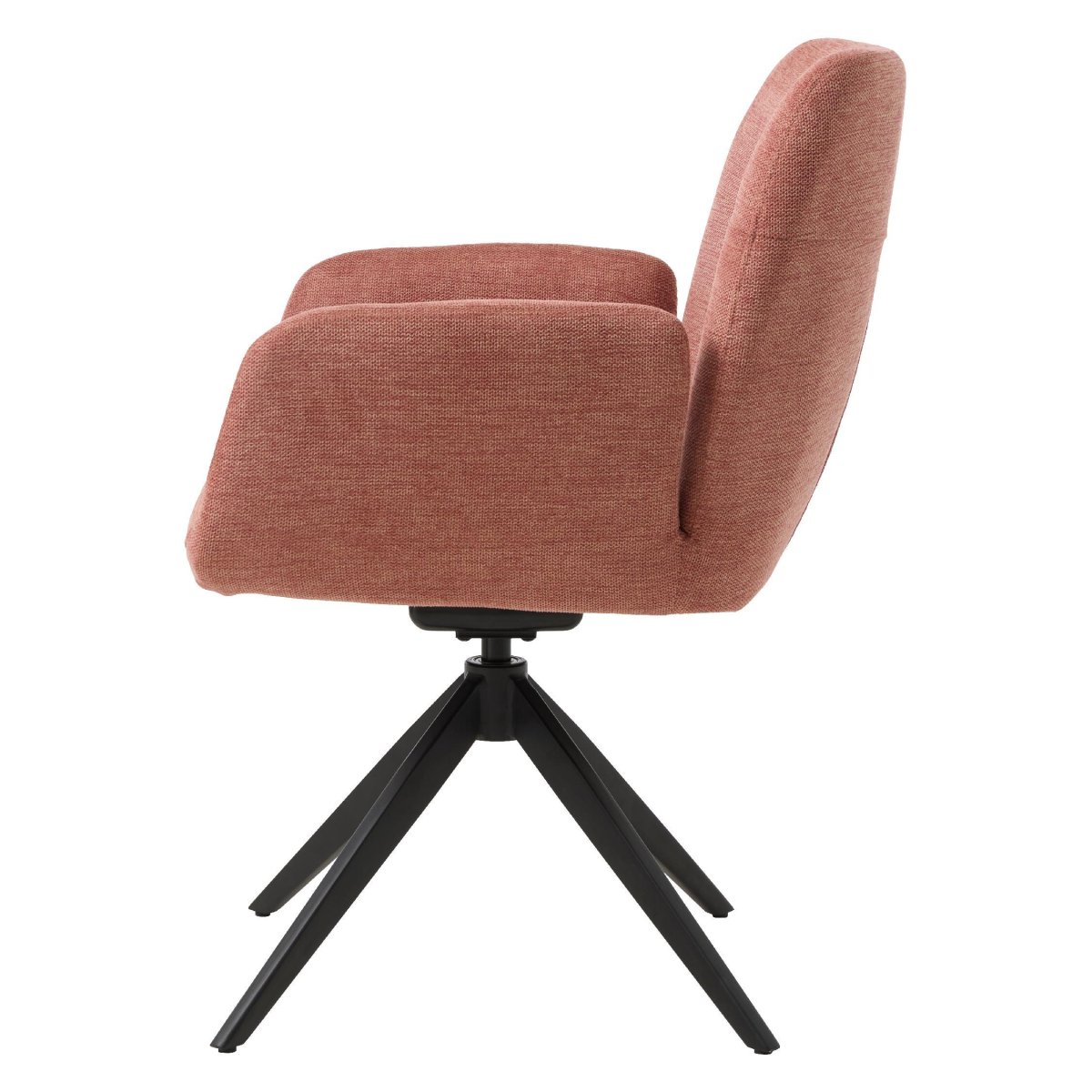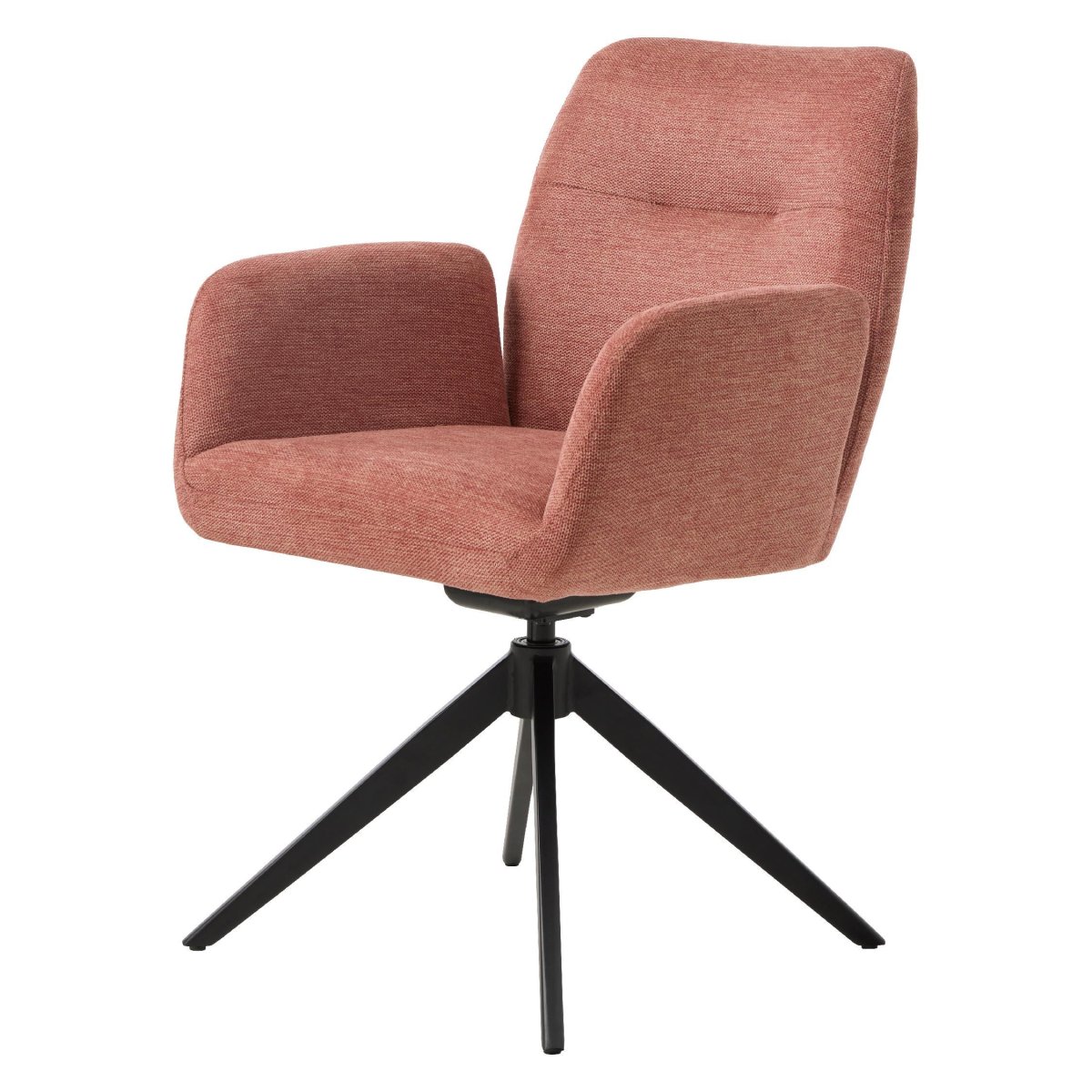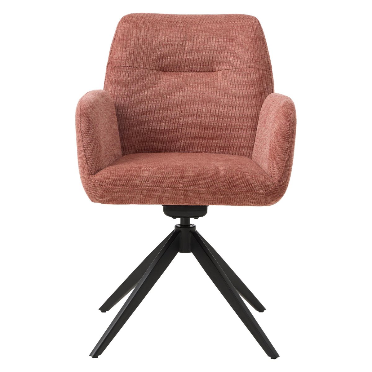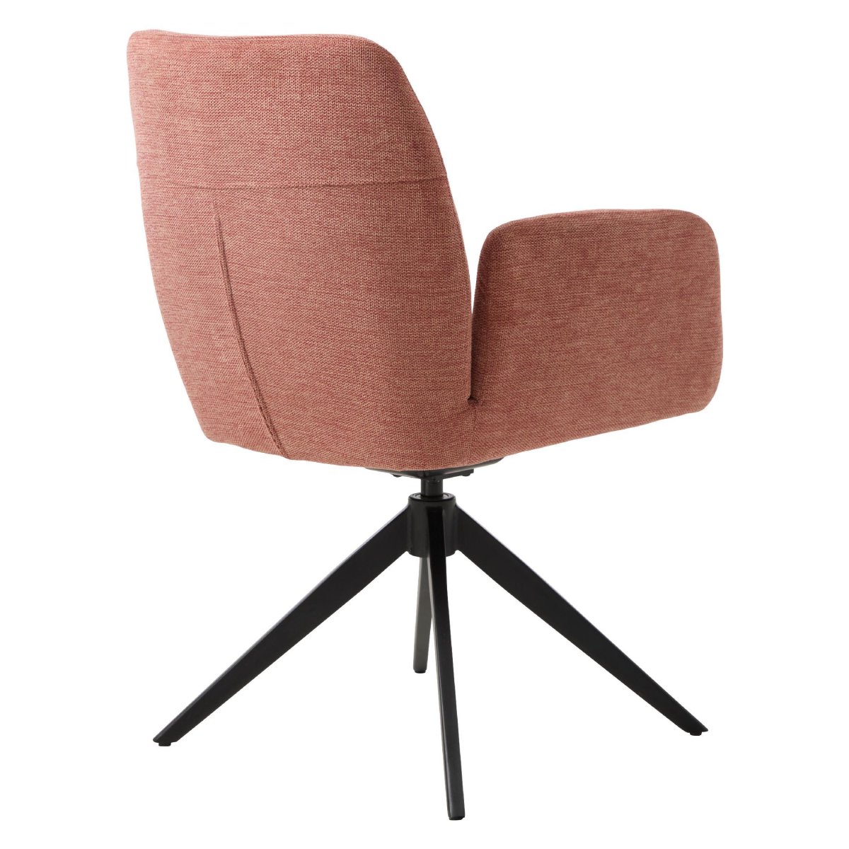 Met deze roze, gestoffeerde eetkamerstoel met armleuning voeg je direct comfort, luxe en stijl toe aan je eethoek. De draaibare kuipstoel combineert een zachte zit met een ondersteunende rugleuning en een stabiel zwart stalen vierpoot onderstel. Dankzij de draaifunctie schuif je moeiteloos aan en sta je weer op zonder de stoel te hoeven verschuiven. Het tijdloze design past perfect in een Scandinavisch, modern of hotel chic interieur en biedt langdurig zitgemak tijdens ontbijt, lunch, diner of thuiswerken. Ideaal als eetkamerstoel, keukenstoel of als comfortabele bureaustoel aan de eettafel in de woonkamer.