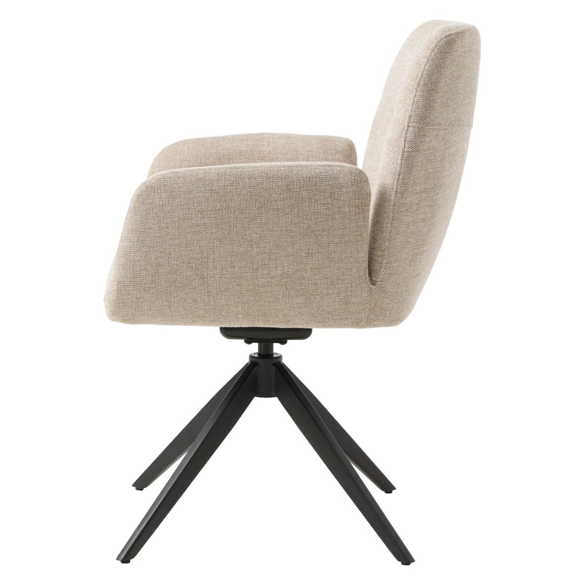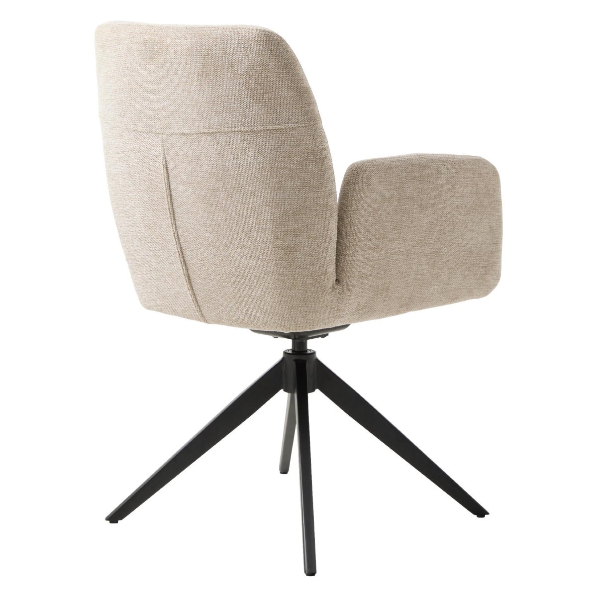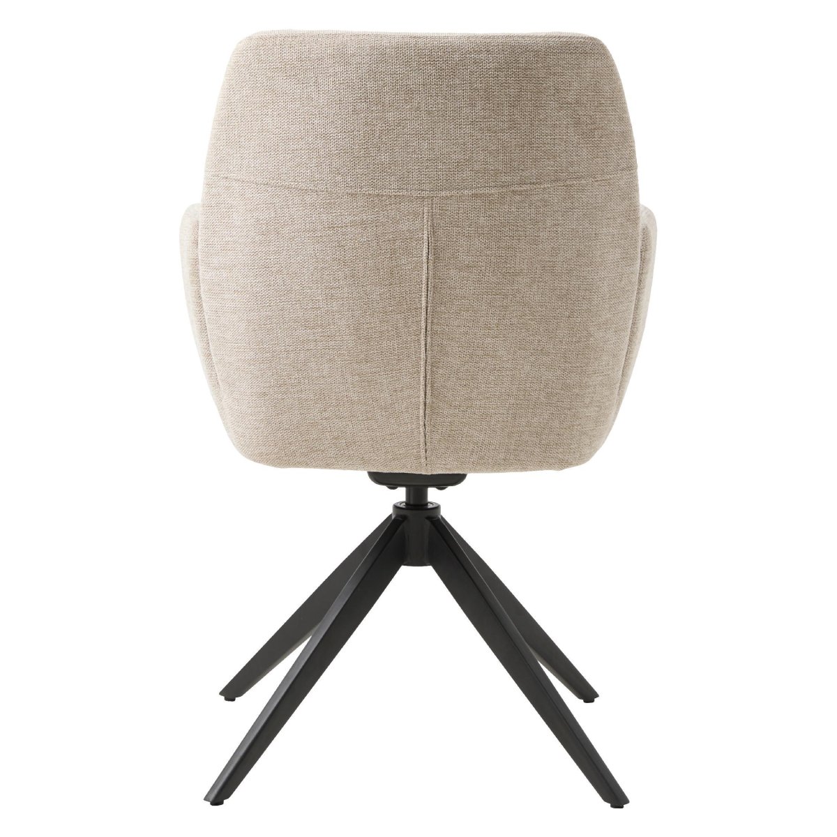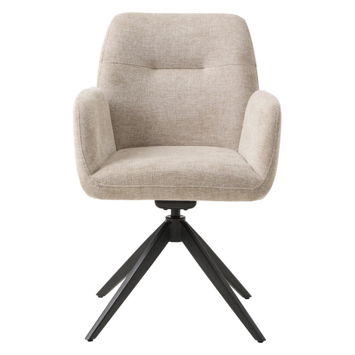 De eetkamerstoel met armleuning Isa biedt optimaal zitcomfort, een stijlvol design en praktische functionaliteit voor iedere eethoek. De zachte zandkleurige stof en het zwarte stalen onderstel met vierpoots draaivoet geven deze draaibare eetkamerstoel een moderne en tijdloze uitstraling. Dankzij de armleuningen, de comfortabele zitting en rugleuning én de 360 graden draaifunctie zit je heerlijk ontspannen tijdens ontbijt, diner, thuiswerk of een gezellige borrel. Deze stoffen draaistoel voor aan de eettafel past moeiteloos in een modern, Scandinavisch of industrieel interieur en komt perfect tot zijn recht in de eetkamer, woonkeuken of als stijlvolle accentstoel in de woonkamer.