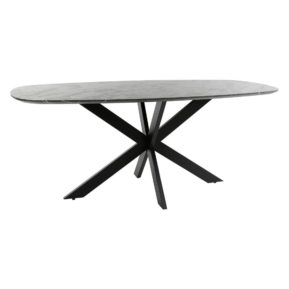 Deze eigentijdse eetkamertafel met Deens ovaal tafelblad in grafiet geeft je eethoek direct een moderne, warme en luxe uitstraling. Het 3D-melamine blad heeft een hoogwaardige keramieklook en is nauwelijks van echt keramiek te onderscheiden, terwijl je profiteert van het gemak van een onderhoudsvriendelijk en slijtvast oppervlak. Het zwarte stalen kruisonderstel zorgt voor een stabiele basis en voegt een stoere, industriële touch toe aan je interieur. Met een lengte van 180 centimeter biedt deze ovale eettafel comfortabel plaats aan meerdere personen, ideaal voor lange diners, dagelijkse gezinsmaaltijden en gezellige avonden met vrienden. Deze eetkamertafel uit de serie Jorin van Nest of Nora komt perfect tot zijn recht in een modern, Scandinavisch, industrieel of minimalistisch interieur.