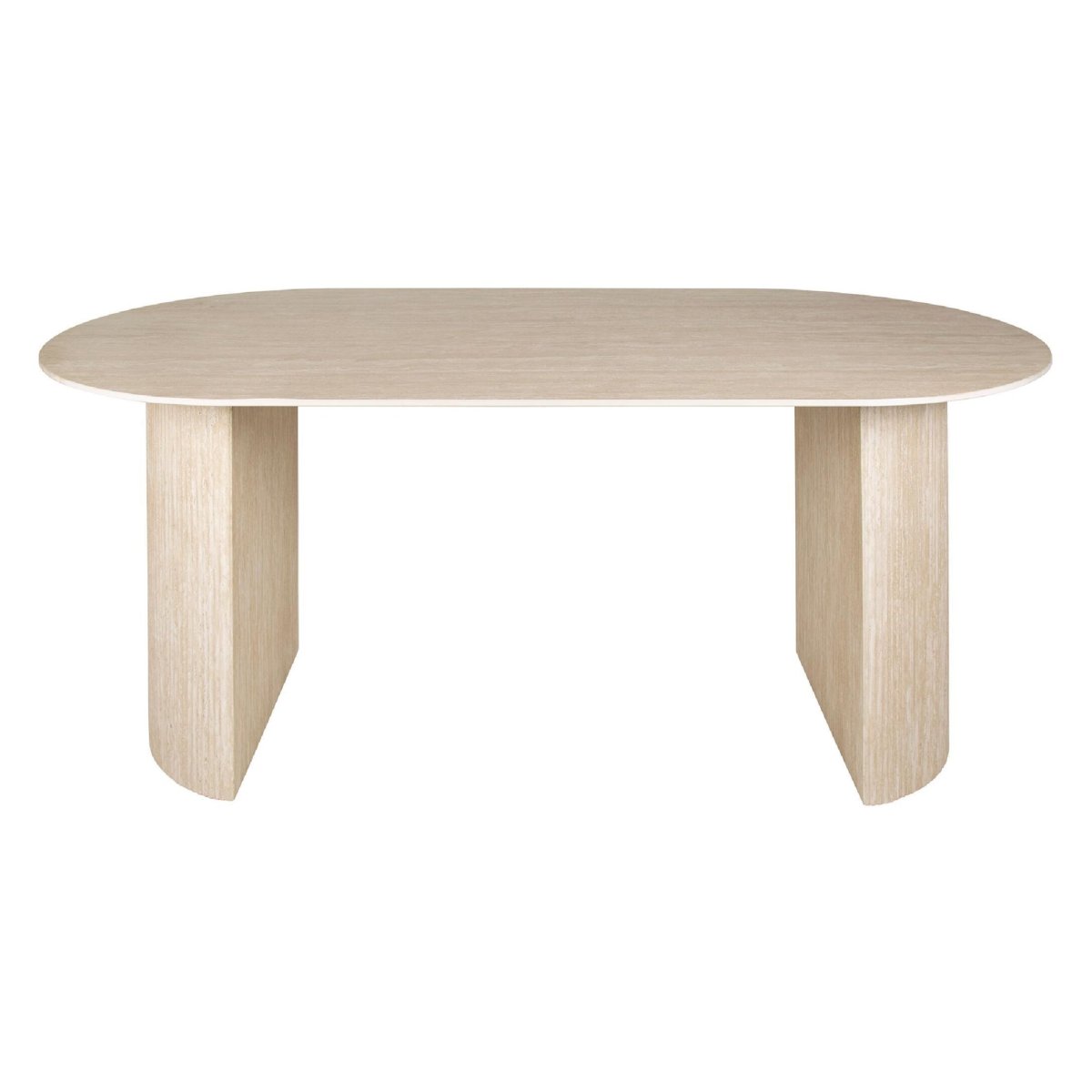 Bij deze ovale eettafel draait alles om een rustige, luchtige uitstraling in je interieur. Door de afgeronde hoeken beweeg je gemakkelijk rondom het blad en oogt je eethoek minder massief dan met een rechthoekige eettafel. De lengte van 180 cm biedt genoeg plek voor een gezin of klein gezelschap, terwijl de breedte van 90 cm ervoor zorgt dat de tafel ook in een kleinere eetkamer, city loft of open keuken perfect tot zijn recht komt. Het travertin dessin in het keramische blad geeft de eettafel een natuurlijke, warme uitstraling, zonder de kwetsbaarheid en het onderhoud van echt natuursteen. Zo creëer je een lichte, uitnodigende eethoek waar je graag aanschuift voor een snel ontbijt, thuiswerkdag of lange avond tafelen met goed gezelschap.