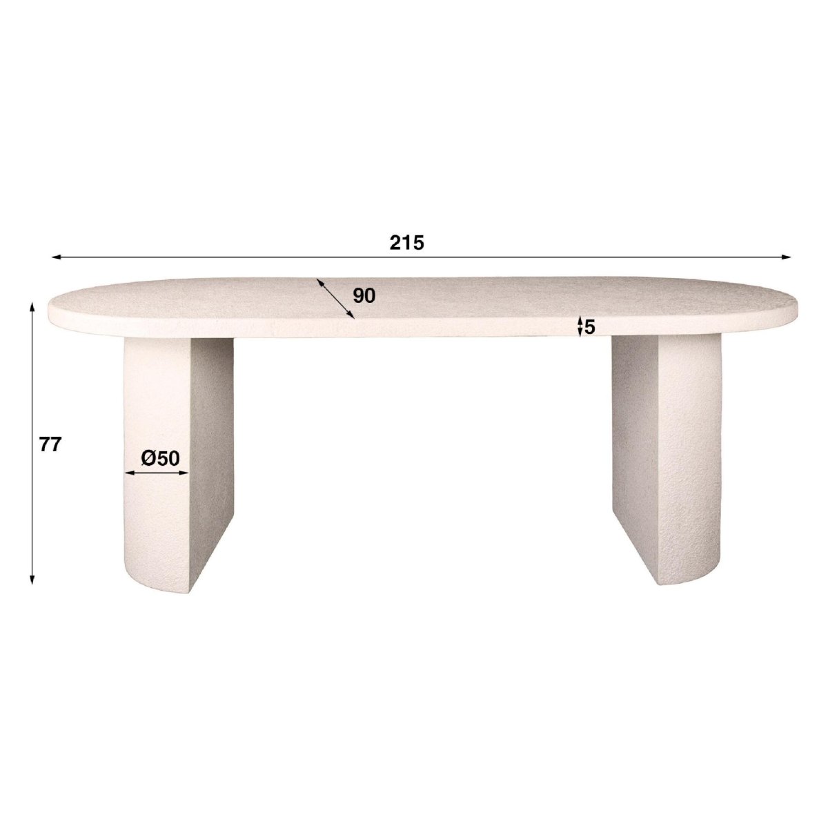 Deze ovale eettafel van Nest of Nora verenigt een strak, modern design met de luxe uitstraling van marmer composiet. Met een royaal tafelblad van 215 centimeter biedt deze tafel volop ruimte voor gezellige etentjes, uitgebreid tafelen, thuiswerken en spelletjesavonden. De hoge, halve maanvormige kolompoten geven het geheel een eigentijdse, architectonische look die perfect past in een stijlvol interieur. Door de ovale vorm oogt de tafel luchtig en uitnodigend, terwijl het stevige onderstel zorgt voor stabiliteit en langdurig gebruiksgemak. Deze design eettafel is een echte blikvanger in de eetkamer of open keuken en laat zich eenvoudig combineren met verschillende soorten eetkamerstoelen en een eetkamerbank.