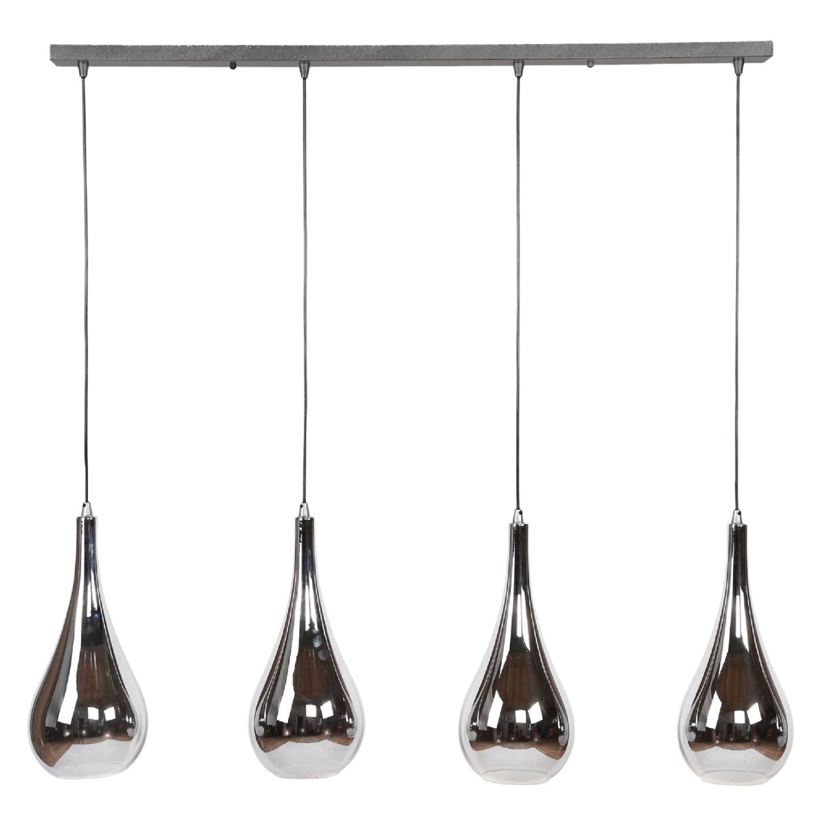 Deze moderne hanglamp valt direct op door de elegante glazen kappen met chroomkleurige glow. Wanneer de lamp uit staat, zorgen de glazen bollen voor een stijlvol spiegeleffect; zodra je het licht inschakelt, ontstaat een warme, uitnodigende gloed die de ruimte gelijkmatig verlicht. De vier glazen lichtbollen geven samen ruim voldoende licht boven de eettafel, zonder dat de lamp zwaar oogt. Dankzij de transparante kappen komen decoratieve filament LED lichtbronnen optimaal tot hun recht en krijgt de plafondlamp een extra luxe en designvolle uitstraling. De langwerpige plafondbalk maakt deze 4-lichts hanglamp ideaal als eetkamerverlichting, maar ook boven een kookeiland, bar of werkblad in een modern interieur is dit een perfecte keuze.