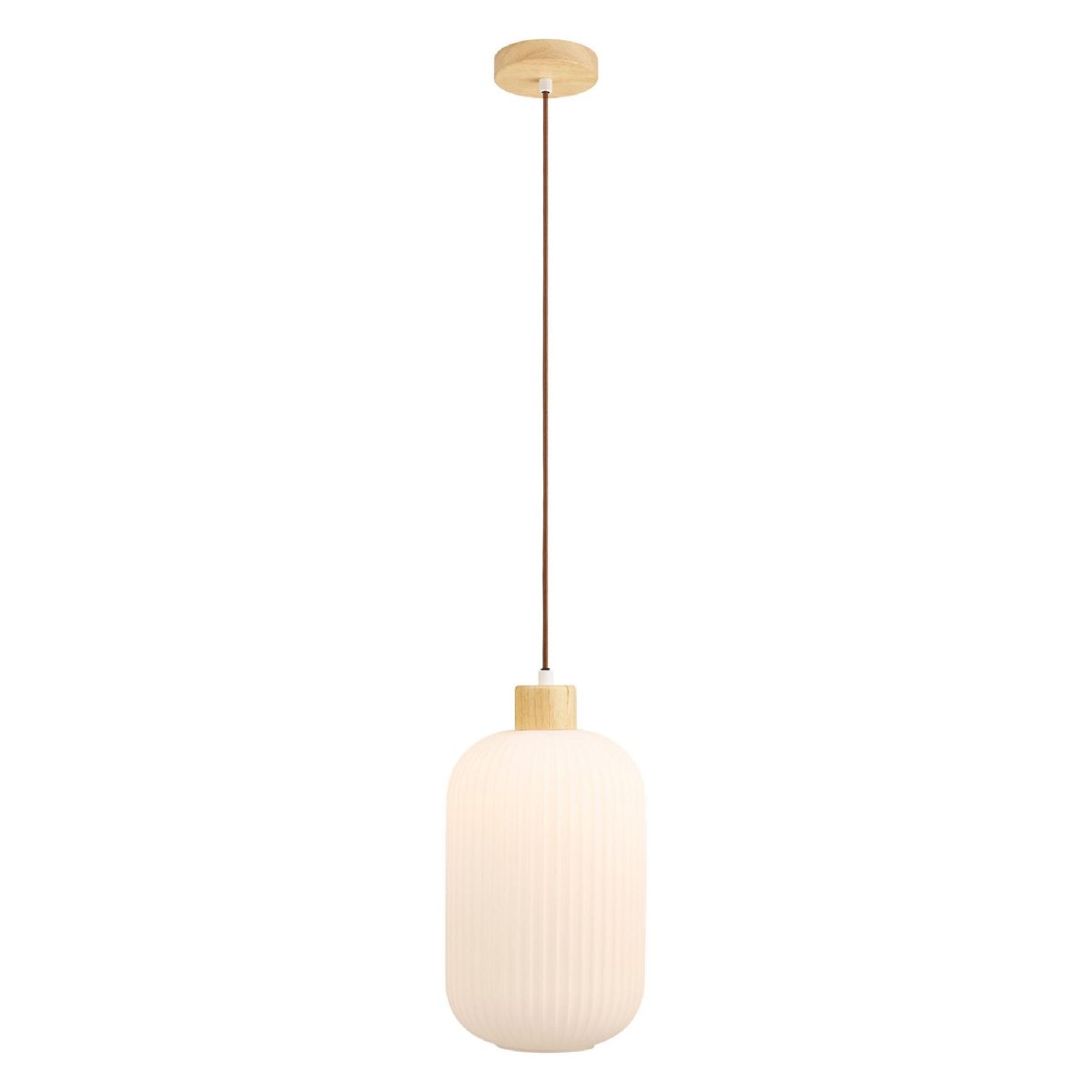 De kracht van deze moderne hanglamp zit in de uitgebalanceerde combinatie van materialen. De witte glazen kap geeft een zachte, diffuse lichtbundel die rust en sfeer brengt boven een eettafel, kookeiland of keukeneiland, terwijl het hout warmte, textuur en karakter toevoegt. Hierdoor laat de lamp zich moeiteloos combineren met lichte Scandinavische meubels, strakke designkeukens en een minimalistische of moderne woonkamer. Het compacte, ronde pendelontwerp oogt luchtig en subtiel, zodat de lamp niet overheerst in de ruimte. Hang hem solitair voor een bescheiden eyecatcher, of plaats meerdere exemplaren op een rij boven een bar, lange eettafel of smal dressoir voor een strak, architectonisch effect. Zo gebruik je dezelfde lamp zowel als accentverlichting als sfeerverlichting in je interieur.