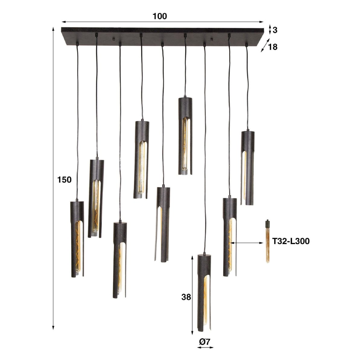 - Advies lichtbron: LED filament buis 30 cm – E27 [T32-L300]