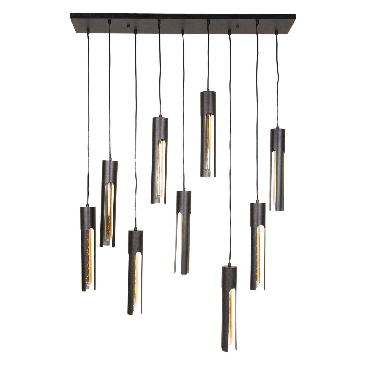 Deze luxe hanglamp met negen lichtpunten geeft je interieur direct een moderne, designvolle uitstraling. De langwerpige plafondlamp is volledig uitgevoerd in metaal met een artic zwarte afwerking en is ideaal als eyecatcher boven de eettafel, het kookeiland of in de woonkamer. Dankzij de slanke, buisvormige lampenkappen en de E27 fittingen combineert deze hanglamp sfeervolle verlichting met een strak, industrieel karakter. Elke pendel is afzonderlijk in hoogte verstelbaar, zodat je de lamp perfect kunt afstemmen op de indeling en hoogte van jouw ruimte. In combinatie met dimbare LED lichtbronnen geniet je van energiezuinige, warme en gezellige verlichting in huis.