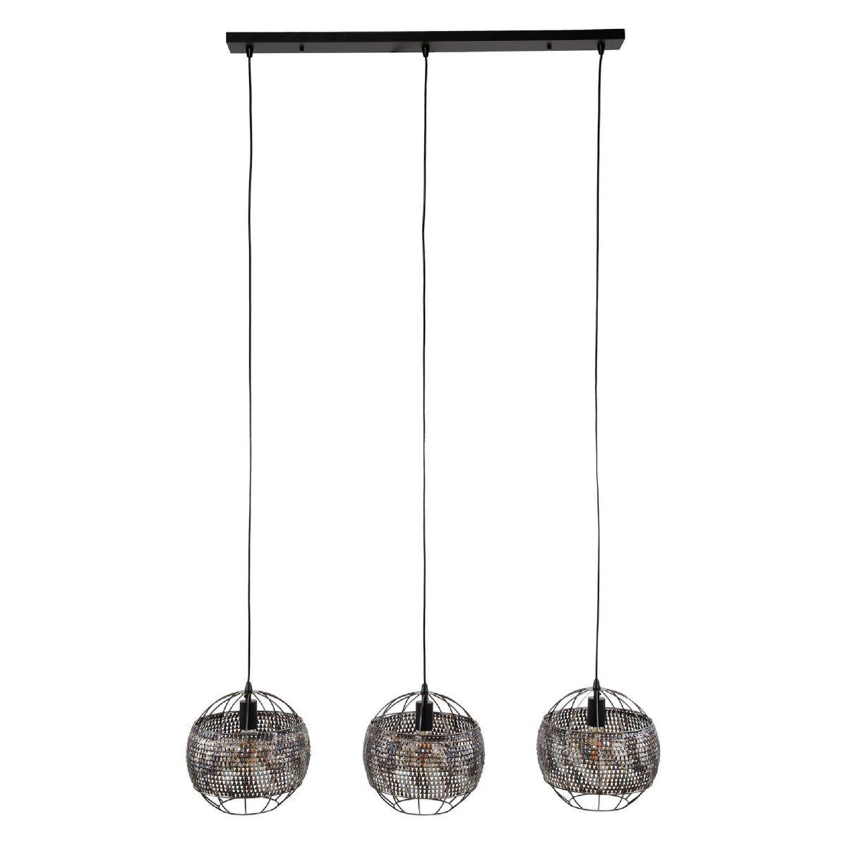 Deze robuuste industriële hanglamp met drie metalen kappen is perfect boven de eettafel, het kookeiland of de bar. De combinatie van de zwartbruine burned finish, de geperforeerde metalen kappen en de semi-transparante constructie zorgt voor een mix van functioneel licht en warme, sfeervolle verlichting. Dankzij de drie lichtpunten wordt het licht gelijkmatig over de tafel verdeeld, terwijl de kleine perforaties in de kappen een speels lichteffect op muur en plafond creëren. Omdat elke kap afzonderlijk in hoogte verstelbaar is, stem je het armatuur eenvoudig af op jouw interieur, tafelopstelling en gewenste sfeer. Met een passende LED lichtbron met E27 fitting geniet je van energiezuinige, duurzame én sfeervolle verlichting in huis.