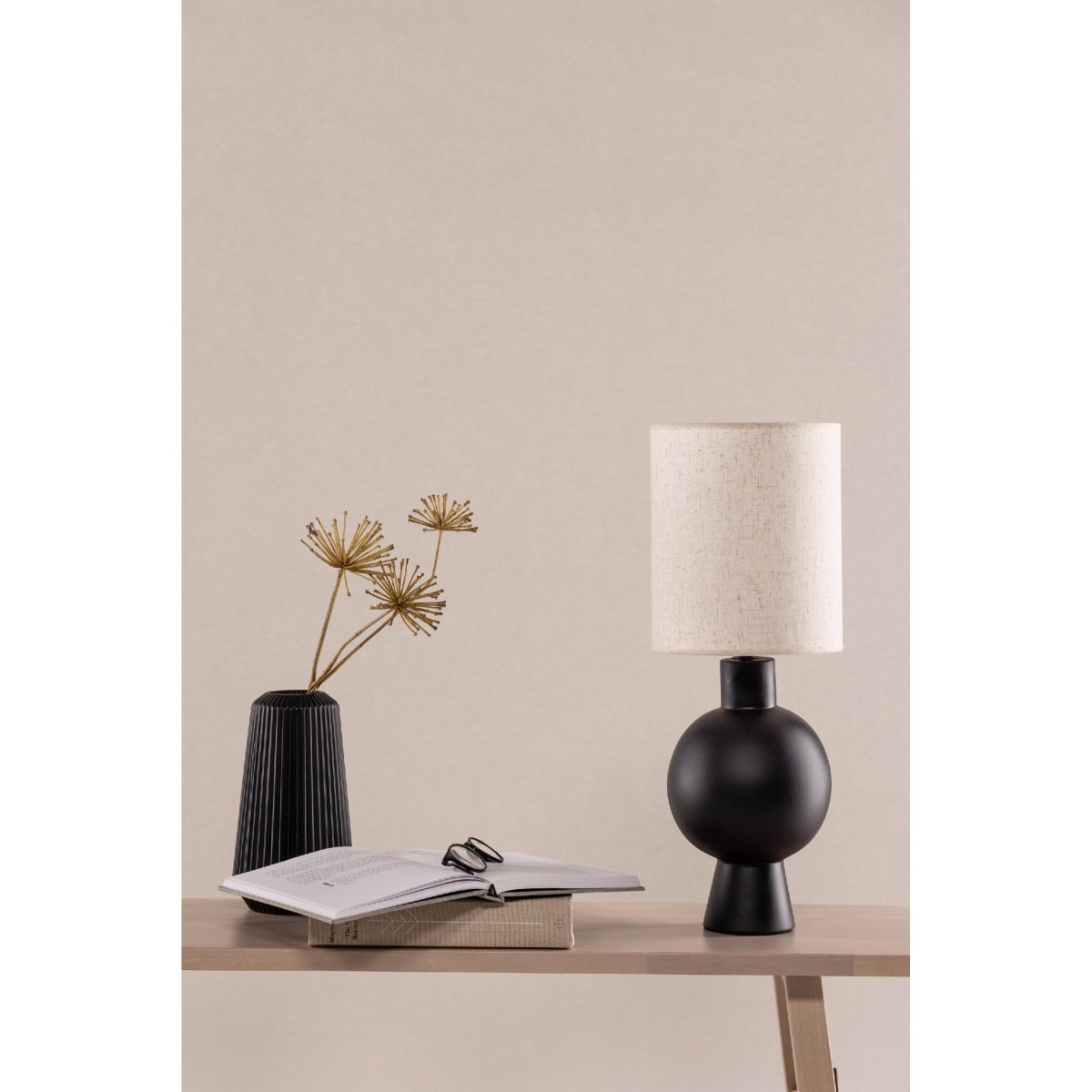 - Kleur: zwart met beige linnen lampenkap